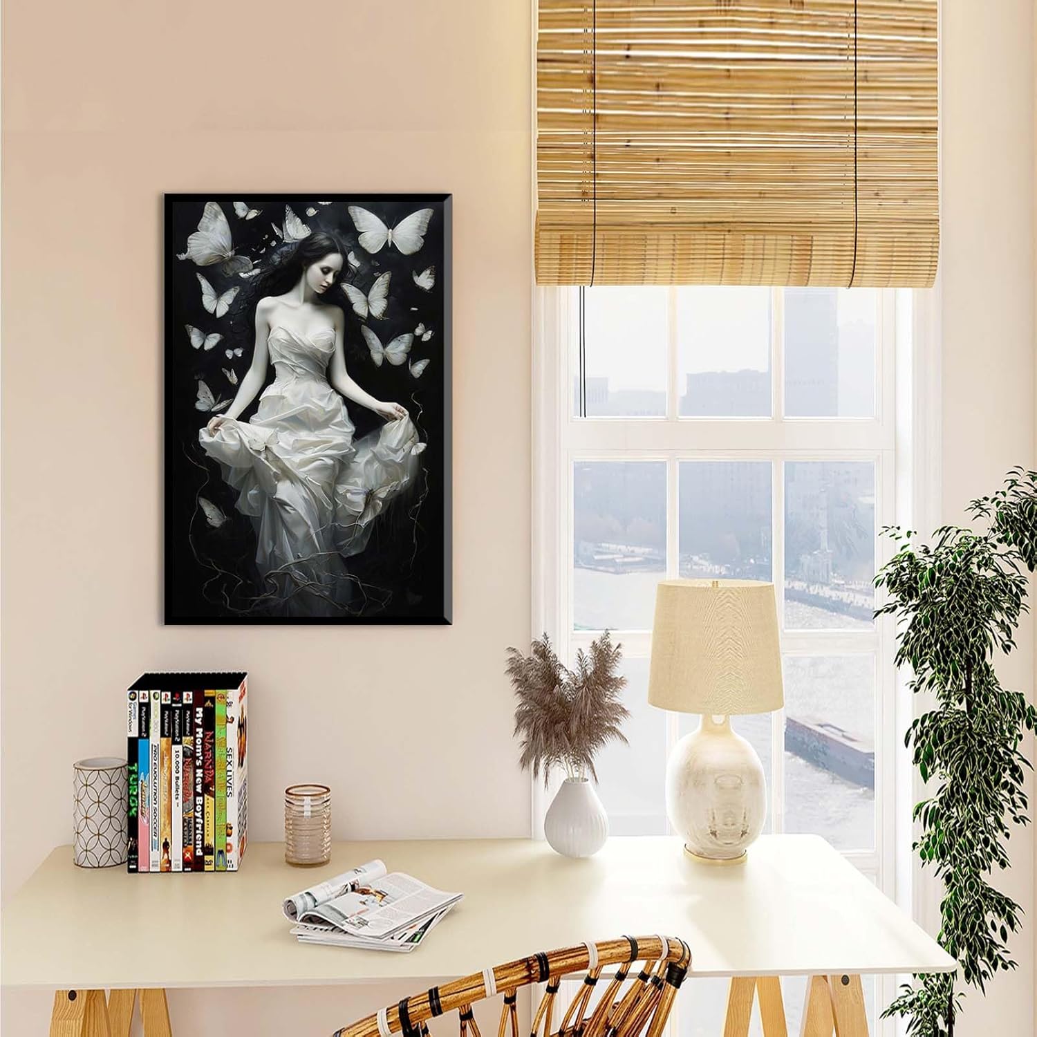 JFHCQJPK Vintage Gothic Feminine Canvas Wall Art Print Butterfly Poster Moody Preppy Wall Art Dark College Decor for Home Bedroom16x24in Metal blackFramed