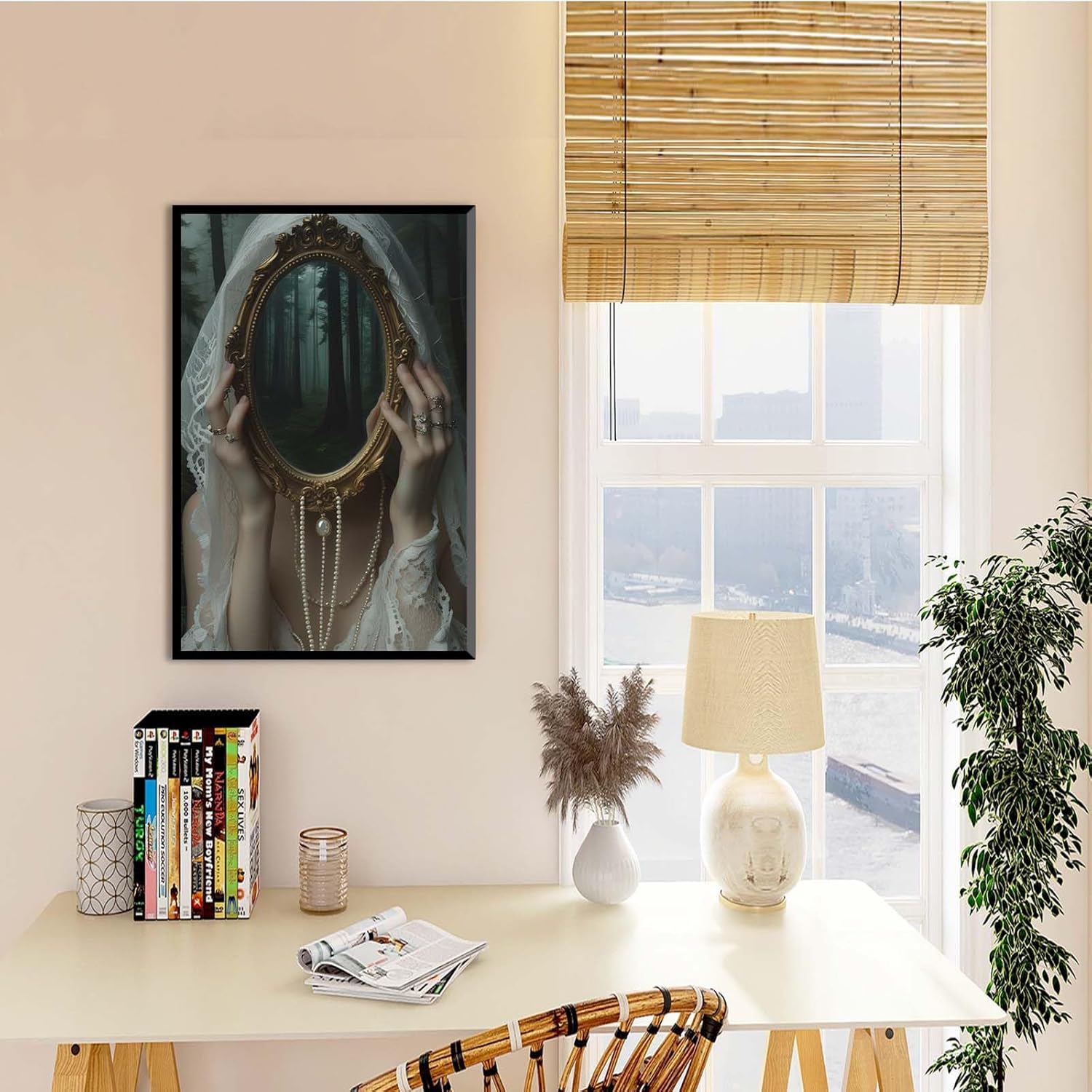 Mirror face covering dark art poster print melancholy gothic painting vintage feminine print victorian style decoration antique art12x16in Metal blackFramed