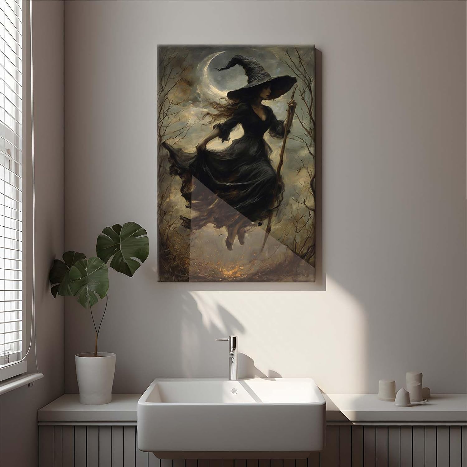 JFHCQJPK Witch in the Forest Halloween Print Wall Art Poster Witch Decor Vintage Print Dark College Wall Art Victorian Gothic Room Decor Canvas Wall Print32x48in Frameless