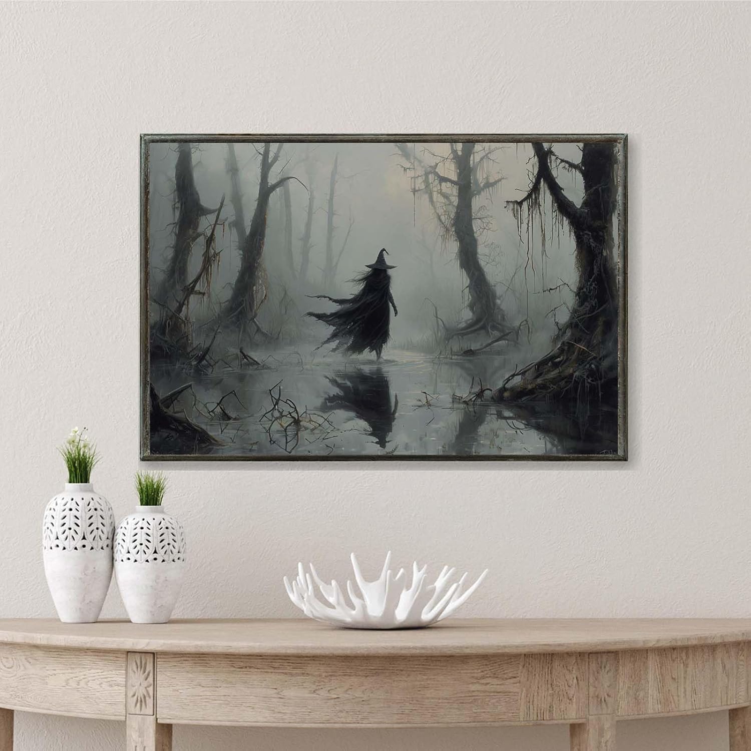 JFHCQJPK Vintage rustic swamp witch poster dark moody wall art gothic horror season halloween print for home decor retro dark moody painting16x24in Metal blackFramed