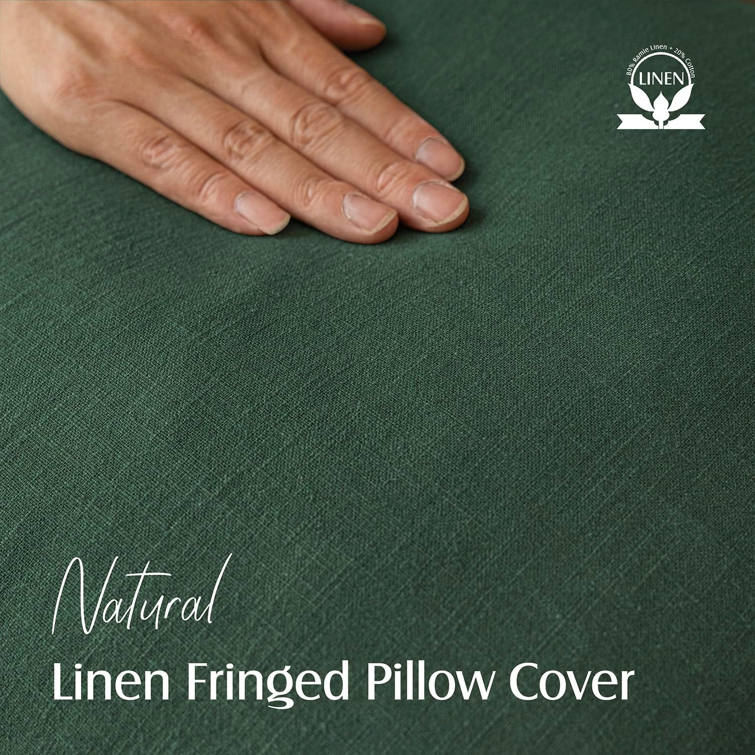 Foindtower Set of 2 Decorative Linen Fringe Throw Pillow Covers Cozy Boho Farmhouse Cushion Cover with Tassels Soft Accent Pillowcase for Couch Sofa Bed Living Room Home Decor, 26×26 Inch, Pine Green