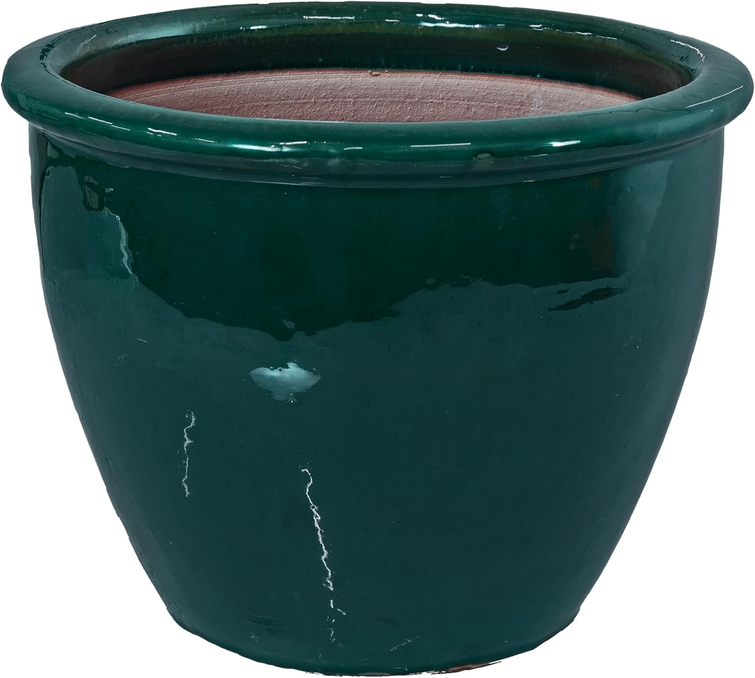 - DESIGNED FOR BEAUTY AND DURABILITY: This outdoor plant pot is crafted with a rich, hand-painted glazed finish that is kiln-fired for a classic, shining appearance. Subtle variations in color highlight the artisanal glazing process, making each piece truly unique. The durable ceramic construction offers natural UV and frost resistance, while its heavy weight adds stability to outdoor arrangements, keeping the planter upright in windy conditions.
