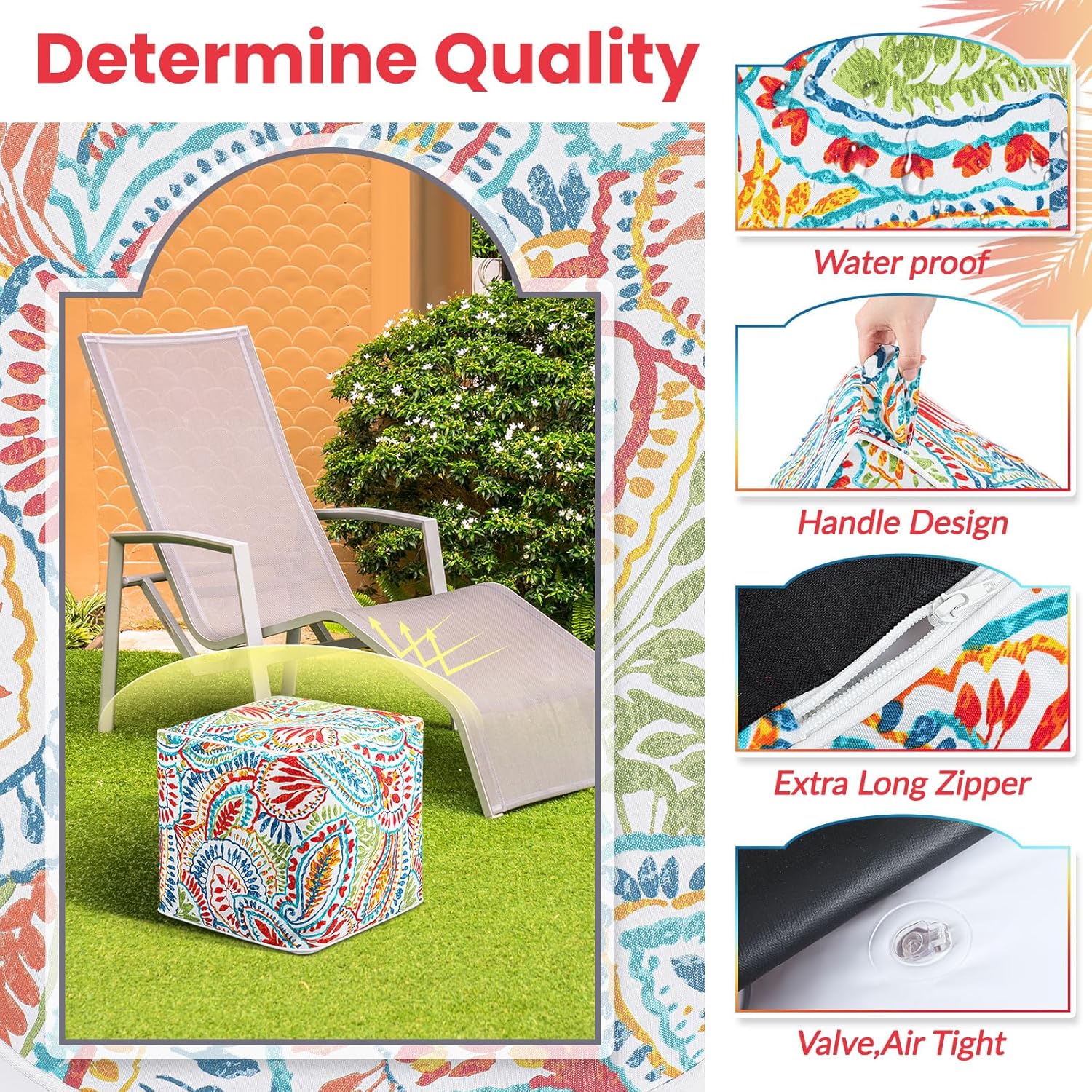 Juexica 1 Pack Ottoman Poufs Indoor Outdoor Inflatable Ottoman Stool Cube Pouffe Square Footstool with Handle for Patio Garden Home Boho Decorative Living Room, Bedroom (16 x 16 x 16 Inches)