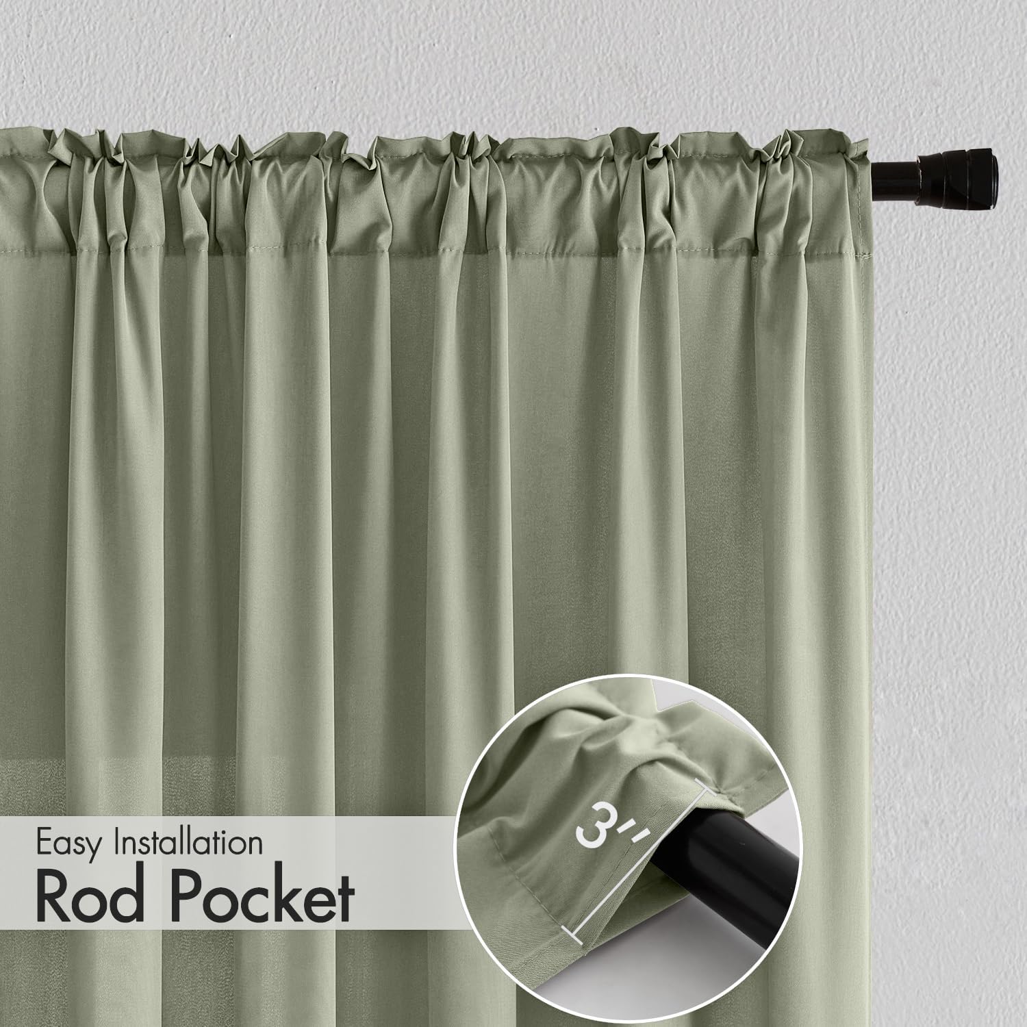 MIULEE Sage Green Privacy Sheer Curtains That Let Light in 72 Inches Long Non-See-Through Semi Sheer Curtain Light Filtering Window Curtains Drapes for Living Room Bedroom 2 Panels Set 42 X 72