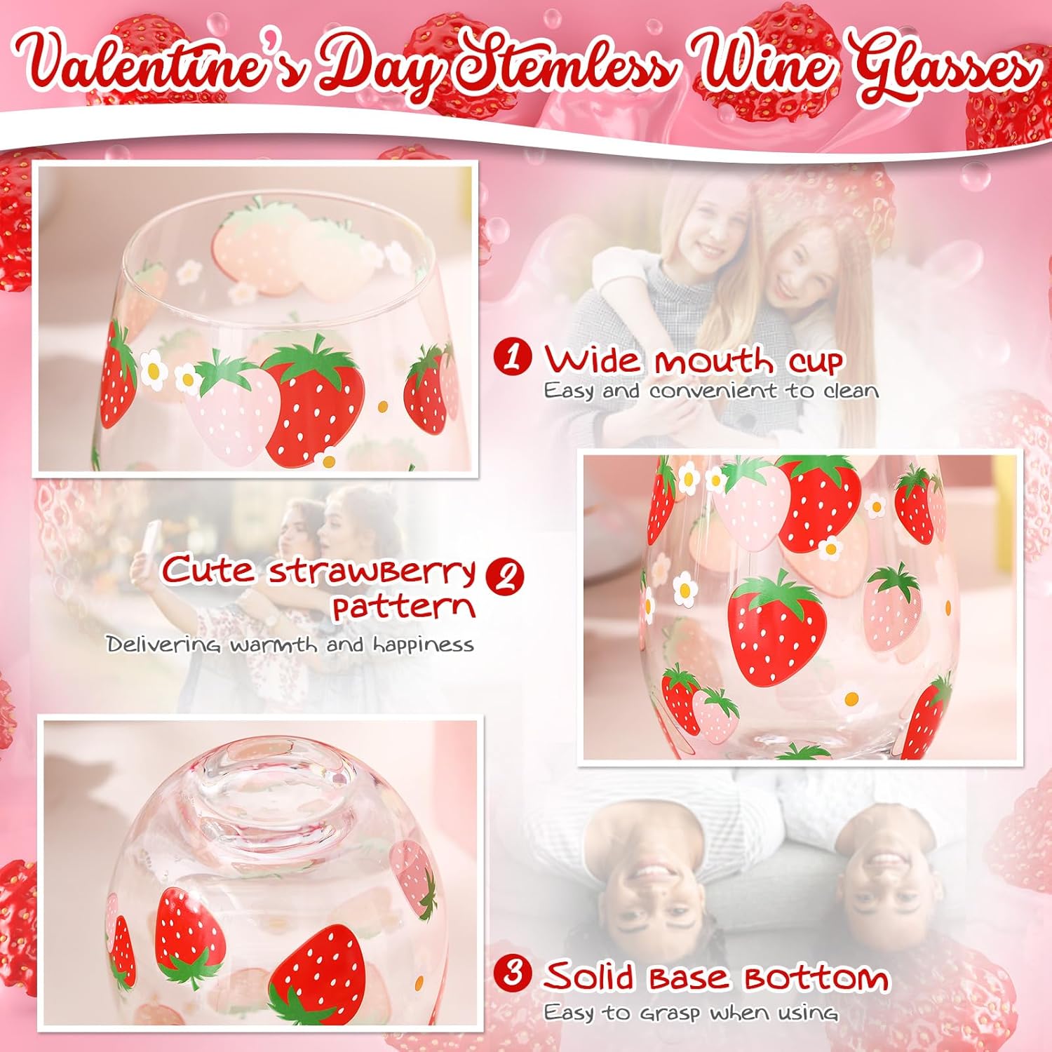 - Included Components : 2 x Strawberry Stemless Wine Glasses