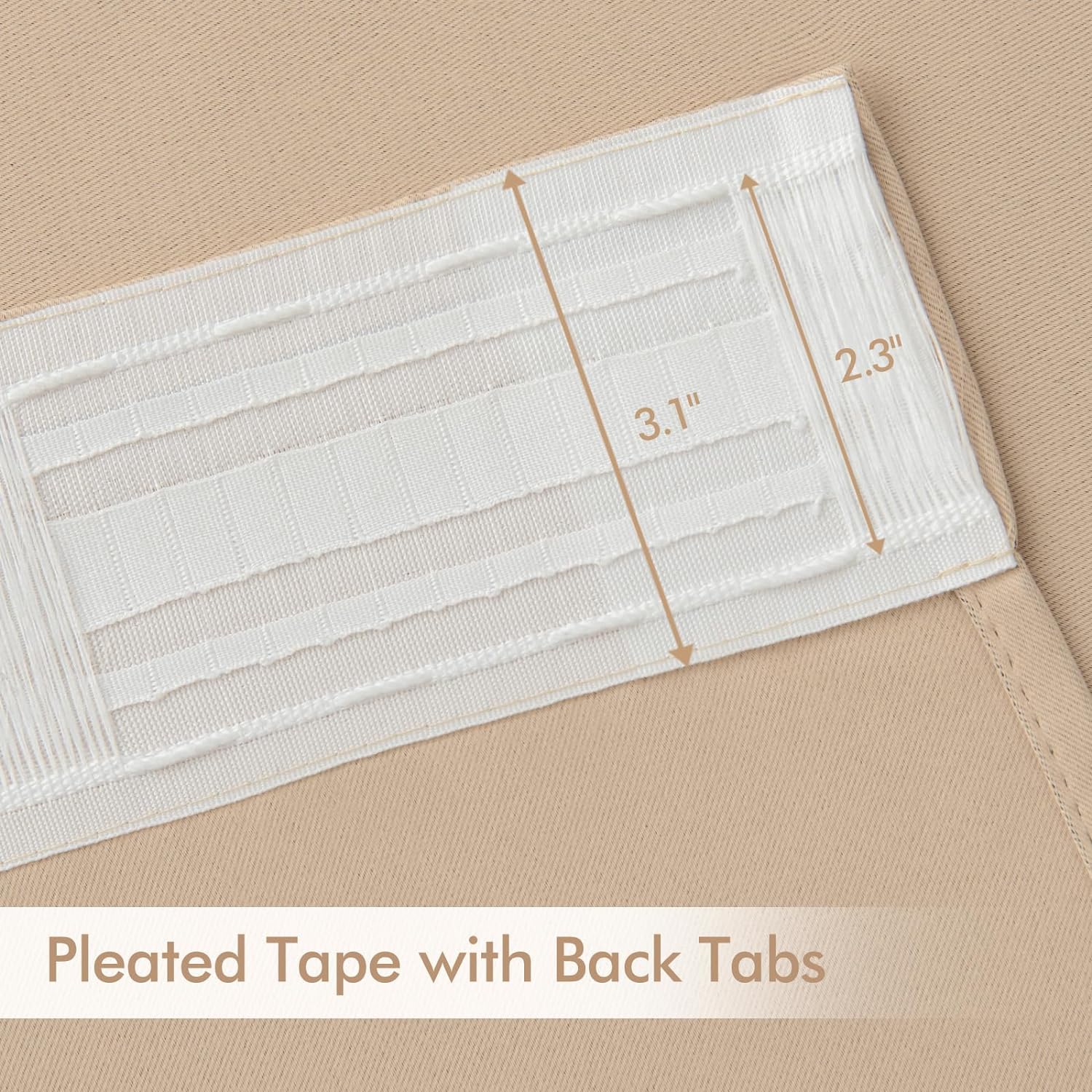 MIULEE Beige Back Tab Blackout Curtains 54 Inches Long 2 Panels Set for Living Room Bedroom Privacy, Rod Pocket/Pinch Pleat Thermal Insulated Room Darkening Pleated Light Blocking Drapes