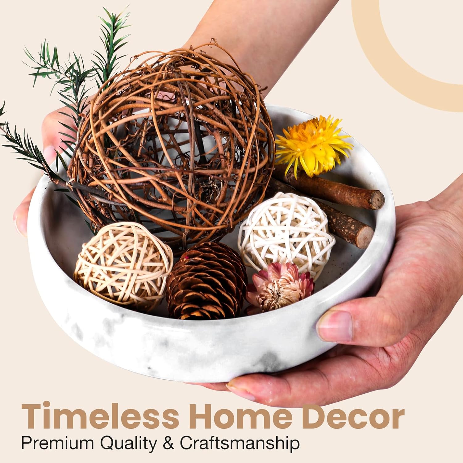 - EACH BOWL IS UNIQUE β Made from 100% solid marble, every piece is a one-of-a-kind work of art. Elevate your home with this modern centerpiece bowl, handcrafted by skilled artisans with a smooth white marble finish.