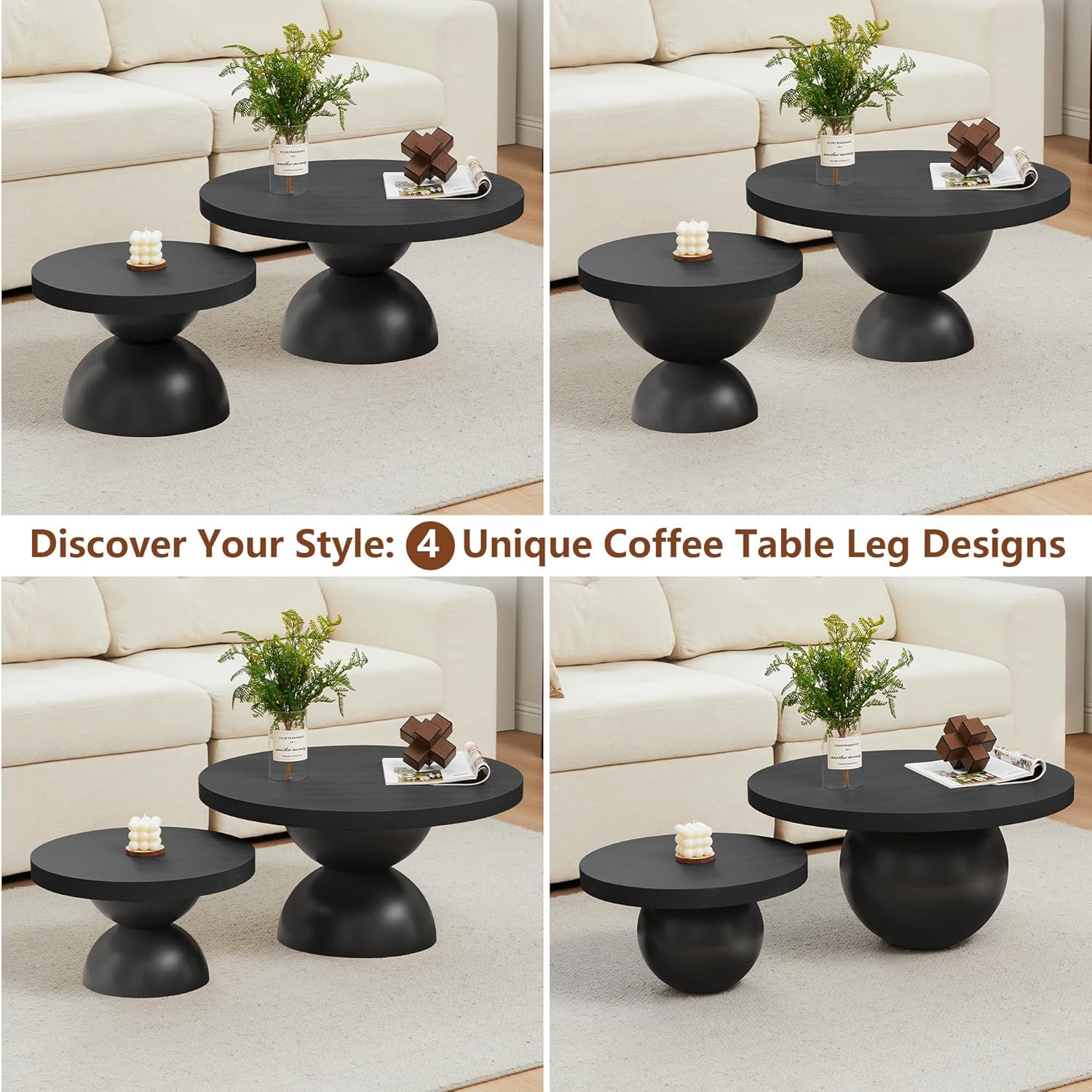 - ăFunctional & FlexibleăUse the larger table as a coffee table centerpiece and the smaller one as a side table or end table next to your sofa or bed. Their neutral finish blends effortlessly with Scandinavian, Japandi, and mid-century modern interiors.