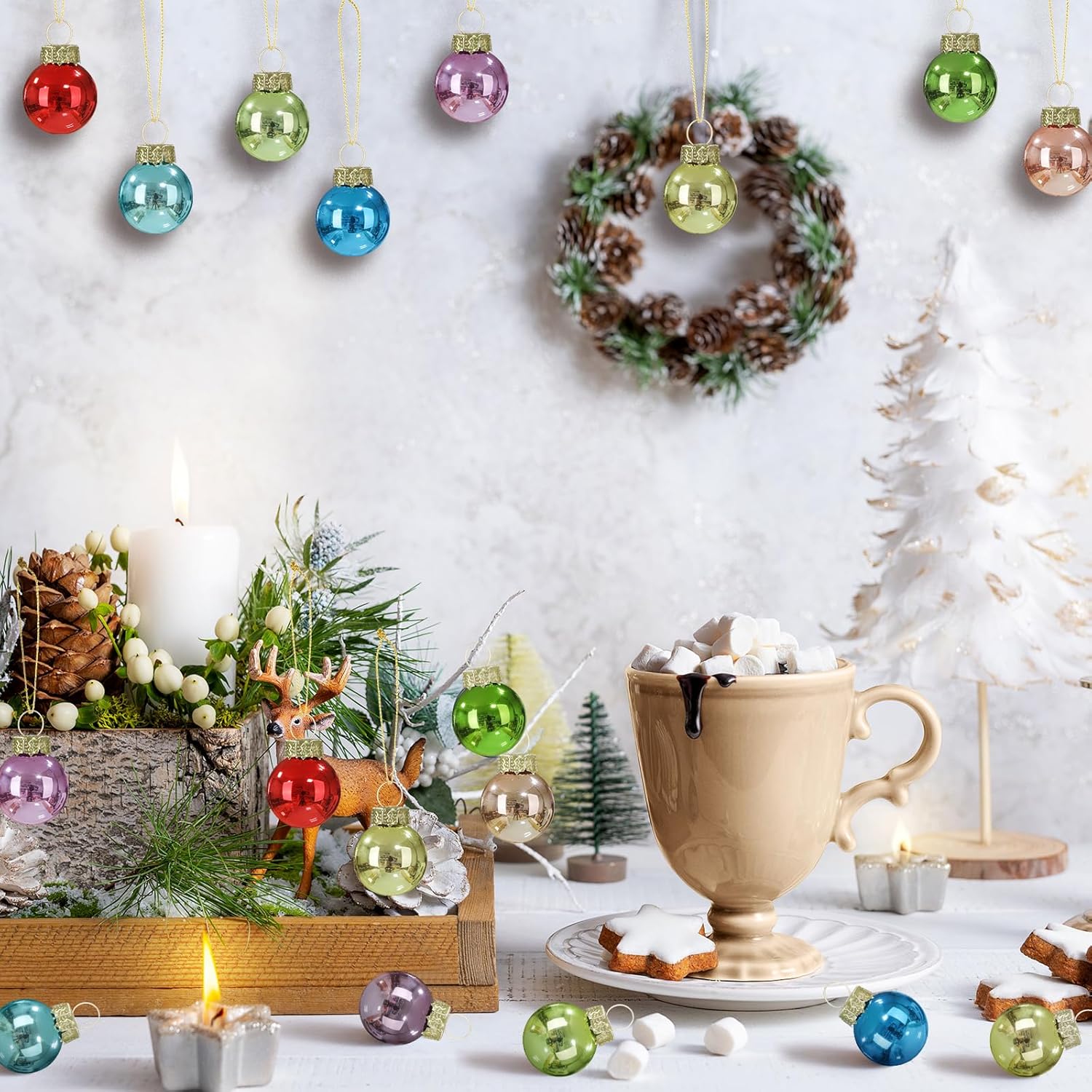 - Effortless Installation: with interesting features like a lanyard, setting up these 1 inch mini glass Christmas ornaments balls is easy, and the feature accelerates and simplifies the decoration process, allowing you more time to immerse yourself in holiday festivities