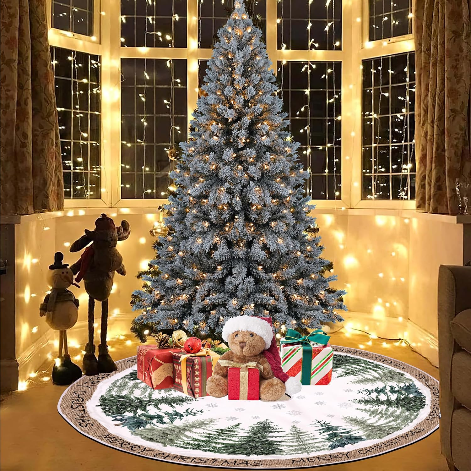 - Premium Fabric and Craftsmanship: Our Christmas tree skirt is made of high-quality linen-like material, with a rustic and farmhouse style. The surface is soft and comfortable, and it won't scratch the floor. It also protects the floor from pine needles or sap. The pattern is beautifully printed and will not fade. The material is durable and the craftsmanship is exquisite, ensuring that it can be used for many years.