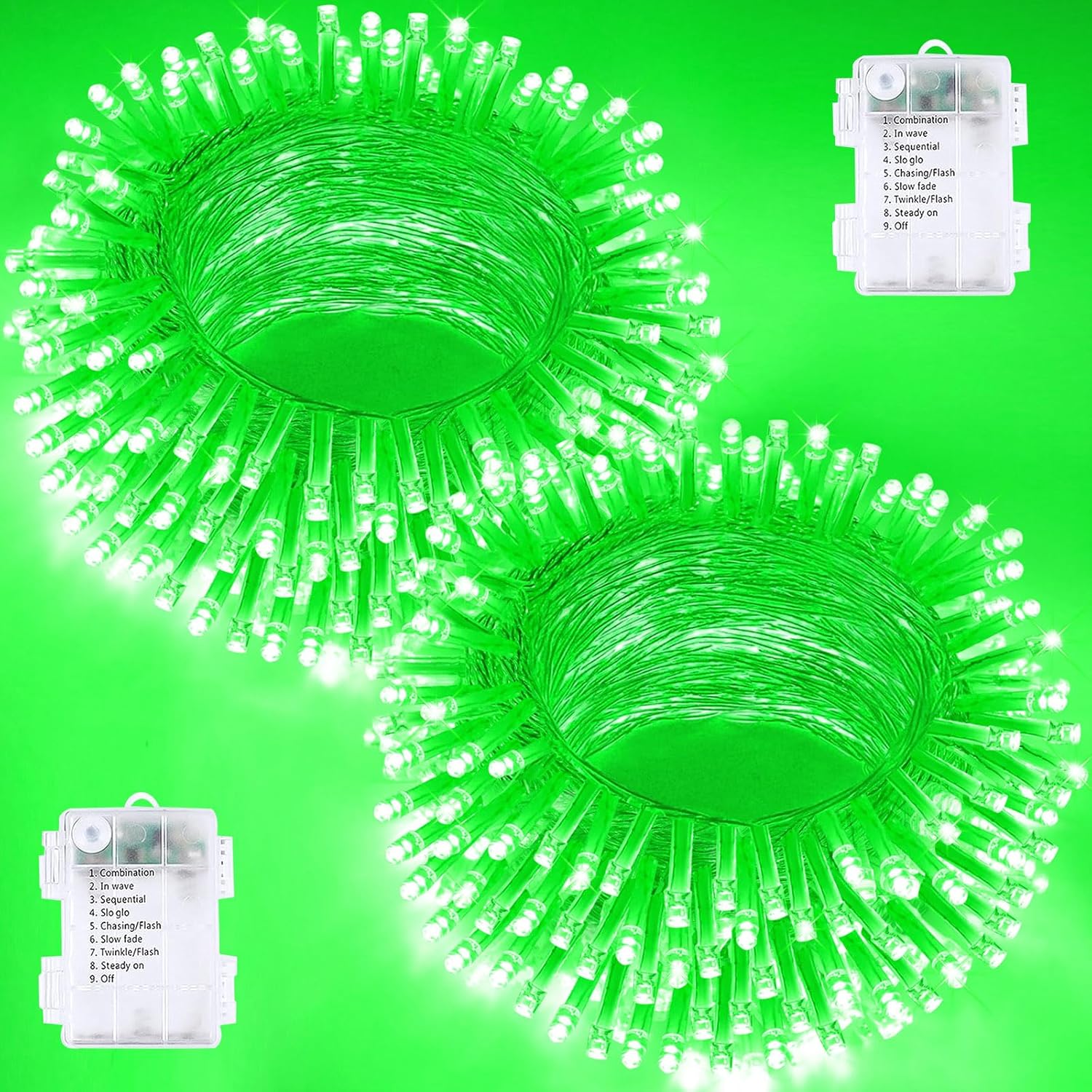 2 Pack Halloween String Lights Battery Operated with Timer, 66FT 200 LED Waterproof Battery Fairy Lights, 8 Modes Twinkle Light for Indoor & Outdoor Party Bedroom Garland Tree Christmas Decor (Green)