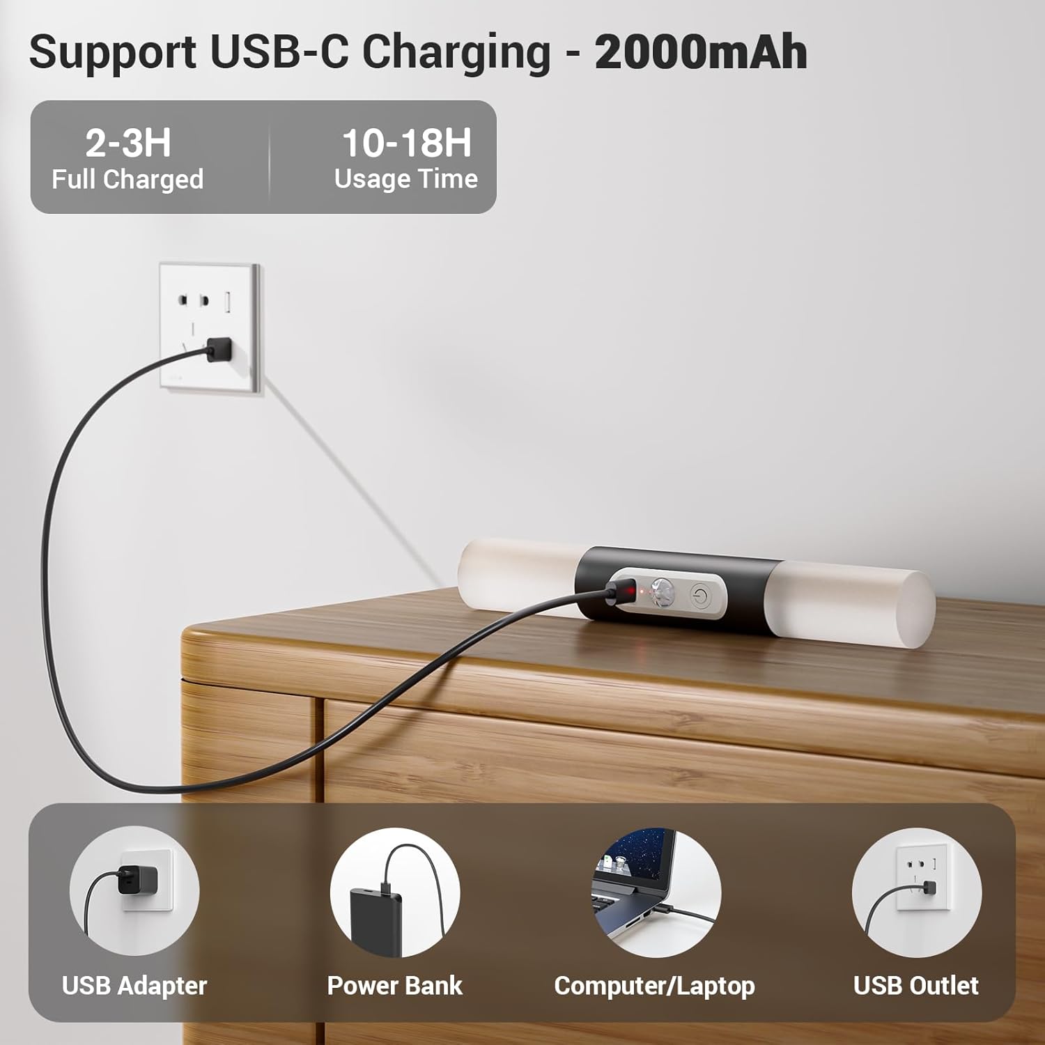 - Easy & Fast Recharge: Wall light features built-in 2000mAh large capacity battery for long-lasting use. Only takes 2 to 3 hours for a full charge with the included USB-C charging cable. Compatible with usb adapter or outlet, power bank, computer or laptop