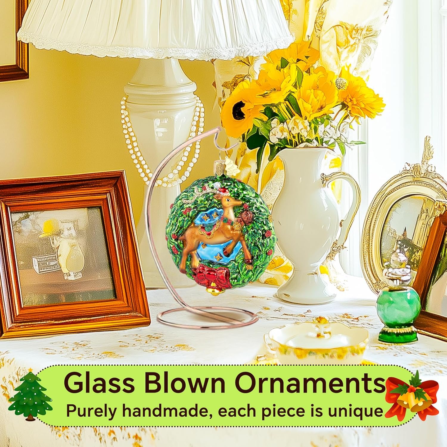 Reindeer Christmas Tree Ornaments,Blown Glass Christmas Ornaments, Wreath Collection Hanging Ornaments,Glass Home Decorations for Animal Lovers Holiday Party Daily Gifts