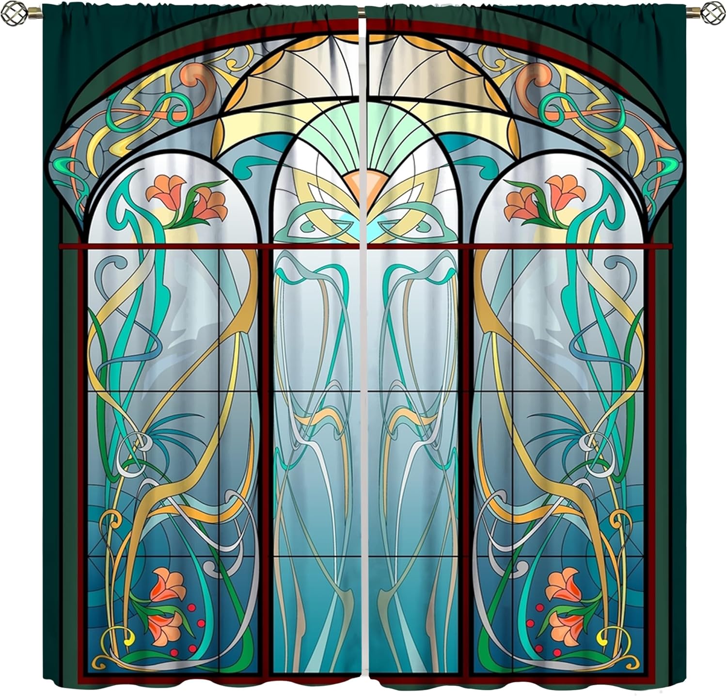 Stained Glass Curtains, Retro Mid Century Boho Abstract Art Home Decor Drapes for Bedroom Living Room Kitchen Window Treatment 2 Panels Set Total Size 55" W X 63" L Inch
