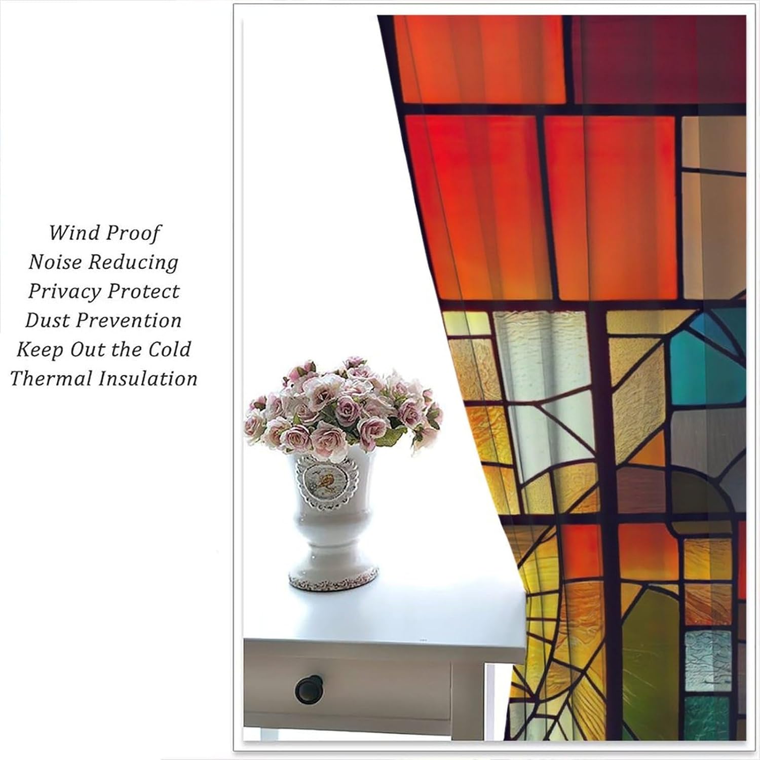 Stained Glass Curtains,Retro Abstract Colorful Geometry Textures Art Home Decor Drapes for Bedroom Living Room Kitchen Window Treatment 2 Panels Set Total Size 63" W X 72" L Inch