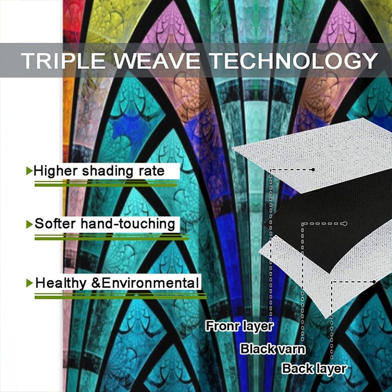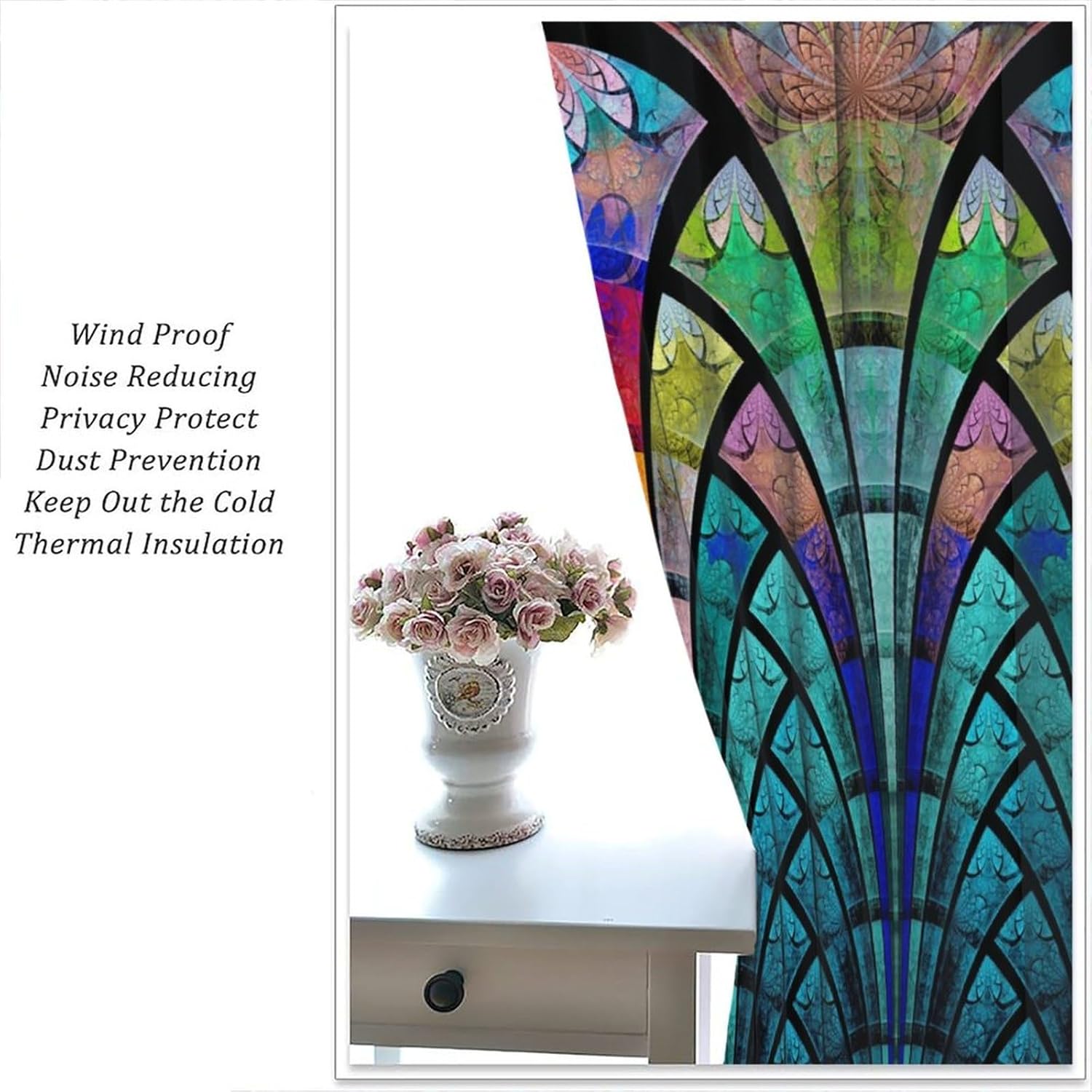Stained Glass Curtains,Retro Design Style Colorful Abstract Art Home Decor Drapes for Bedroom Living Room Kitchen Window Treatment 2 Panels Set Total Size 55" W X 63" L Inch