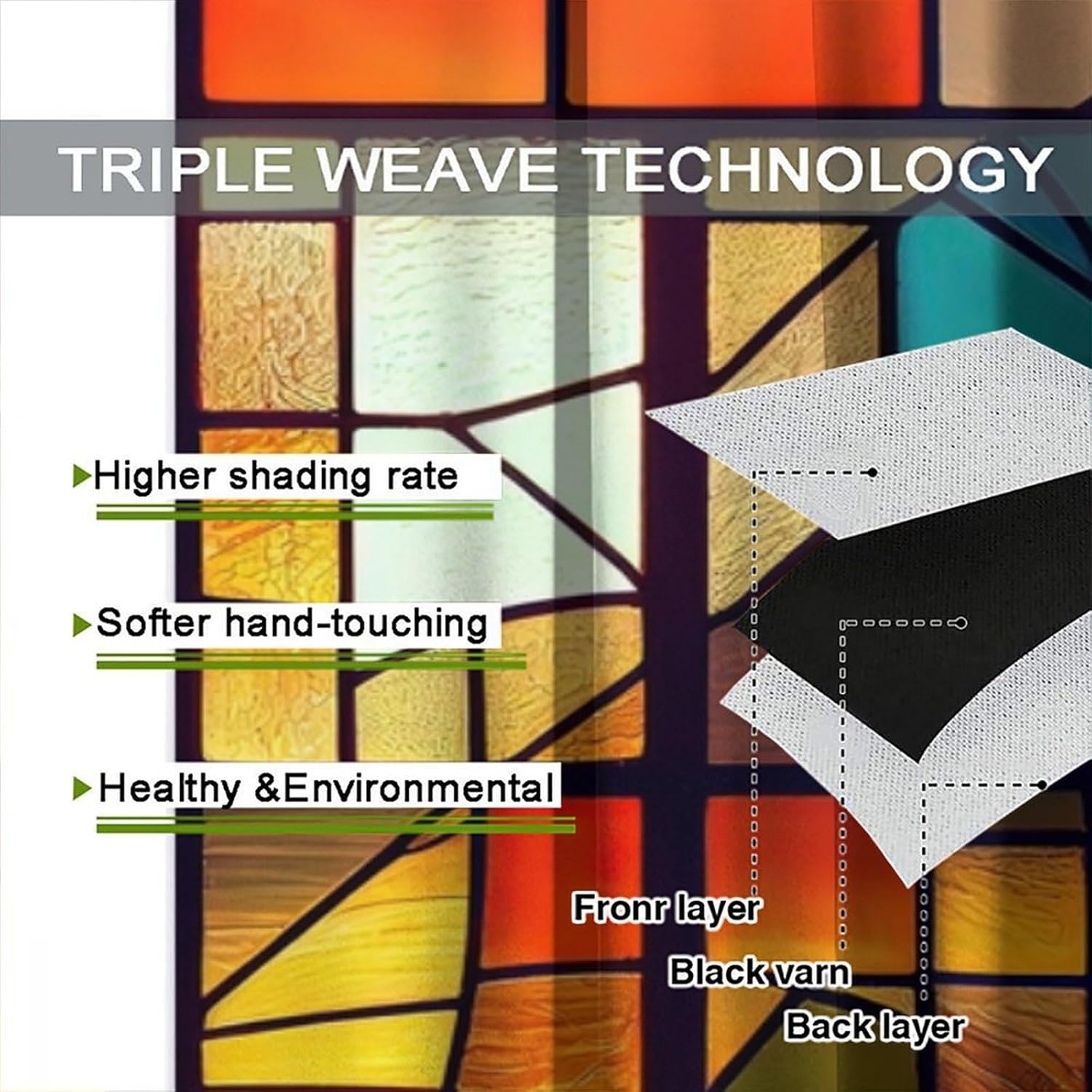 Stained Glass Curtains,Retro Abstract Colorful Geometry Textures Art Home Decor Drapes for Bedroom Living Room Kitchen Window Treatment 2 Panels Set Total Size 52" W X 84" L Inch