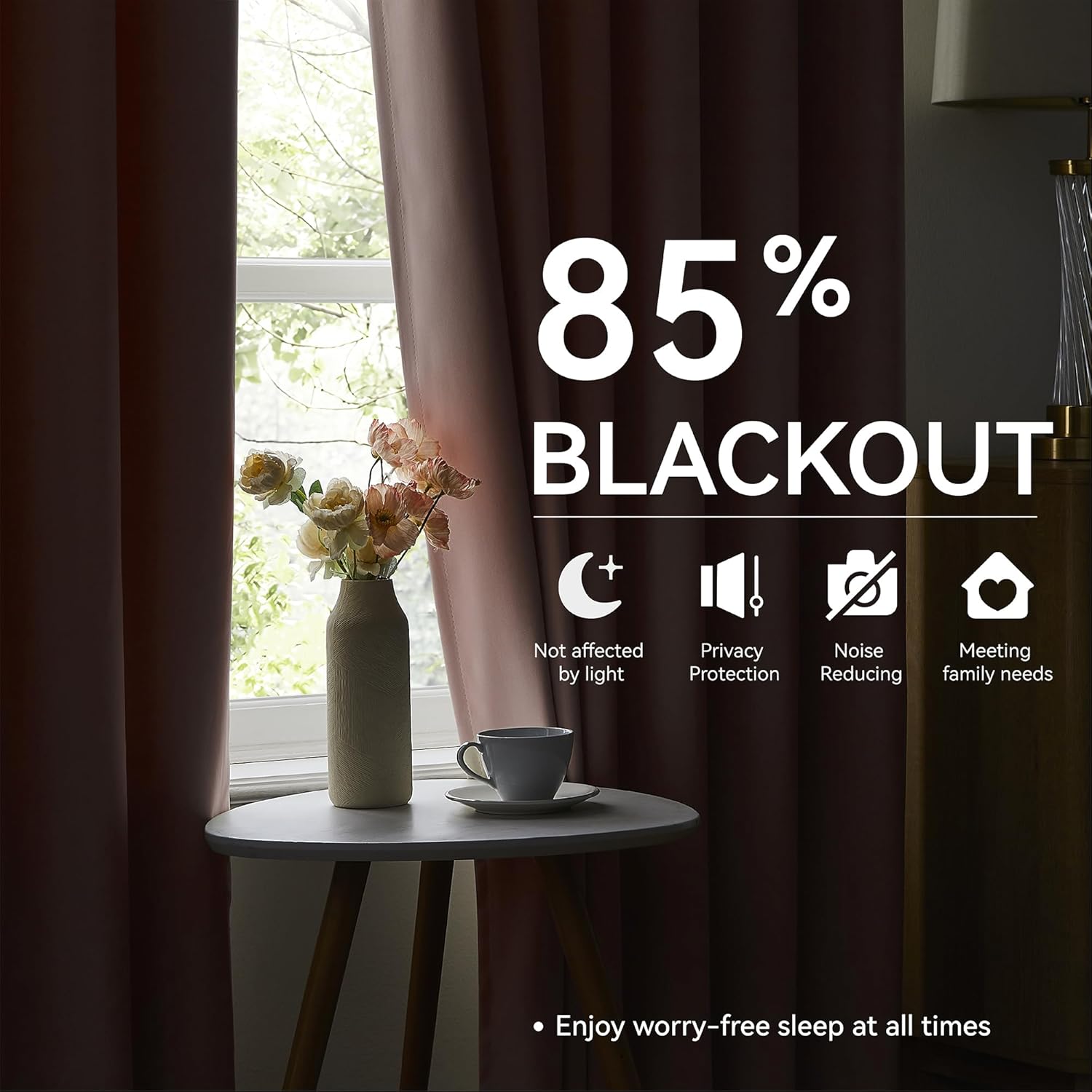 - Room Darkening & Thermal Insulated:Crafted to block out up to 85%–95% of sunlight, these blackout curtains help darken the room, reduce glare, and provide enhanced privacy—ideal for napping, movie nights, or light-sensitive settings. The thermal insulation offers excellent energy saving performance by keeping rooms warmer in winter and cooler in summer. These curtains also provide sound dampening benefits, helping to reduce outside noise for a more peaceful environment.