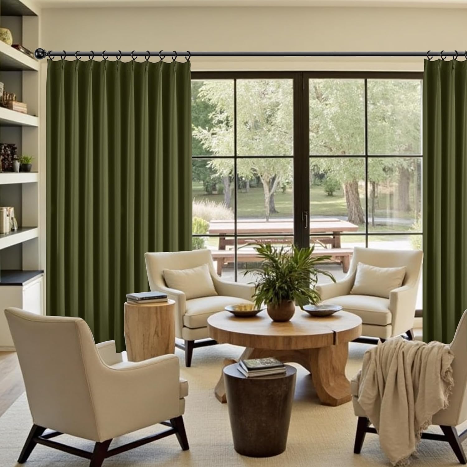 KangBang Olive Green Pinch Pleated Blackout Curtains 120 Inches Long for Hall Windows, Sound Dampening Light Blocking Modern Window Panels Ceiling to Floor for Villa 2 Panels, 40Wx120L