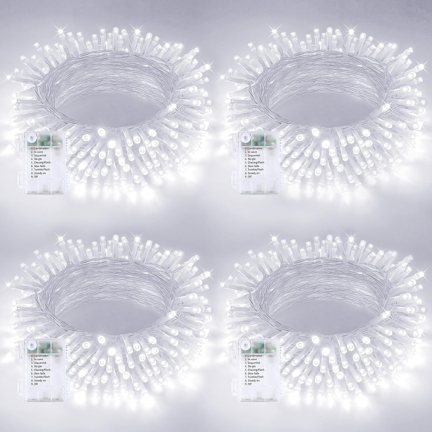 - Ultra-Bright and Durable Battery Powered String Lights: Each string light is 16.5 feet, features 50 super bright LEDs and a waterproof battery case with 8 lighting modes to ensure longevity and reliability. The cool white Christmas lights emit a bright, modern glow in the dark, making them an ideal choice for indoor and outdoor decorations. These fairy lights are perfect for Christmas, birthdays, parties, weddings, creating a cozy and joyful atmosphere.