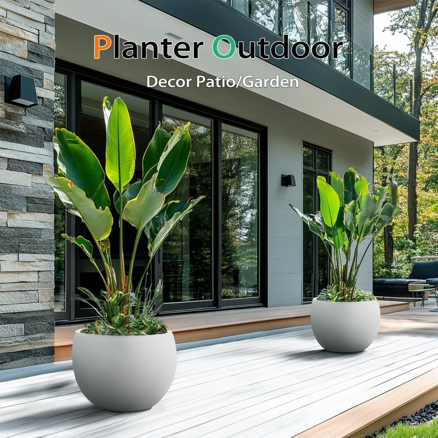 Ball Concrete Planter Outdoor Indoor, Large Tall Cement Plant Pots for Trees Flowers (Gray, 20 inch)