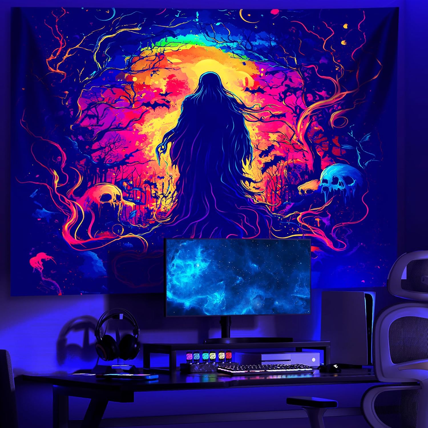 AOHMPT Glow-in-the-Dark Halloween Tapestry - UV Reactive Black Light Wall Hanging Decor for Spooky Parties, Bedroom, Living Room (Shaman, 59" L x 51" W, Unframed)