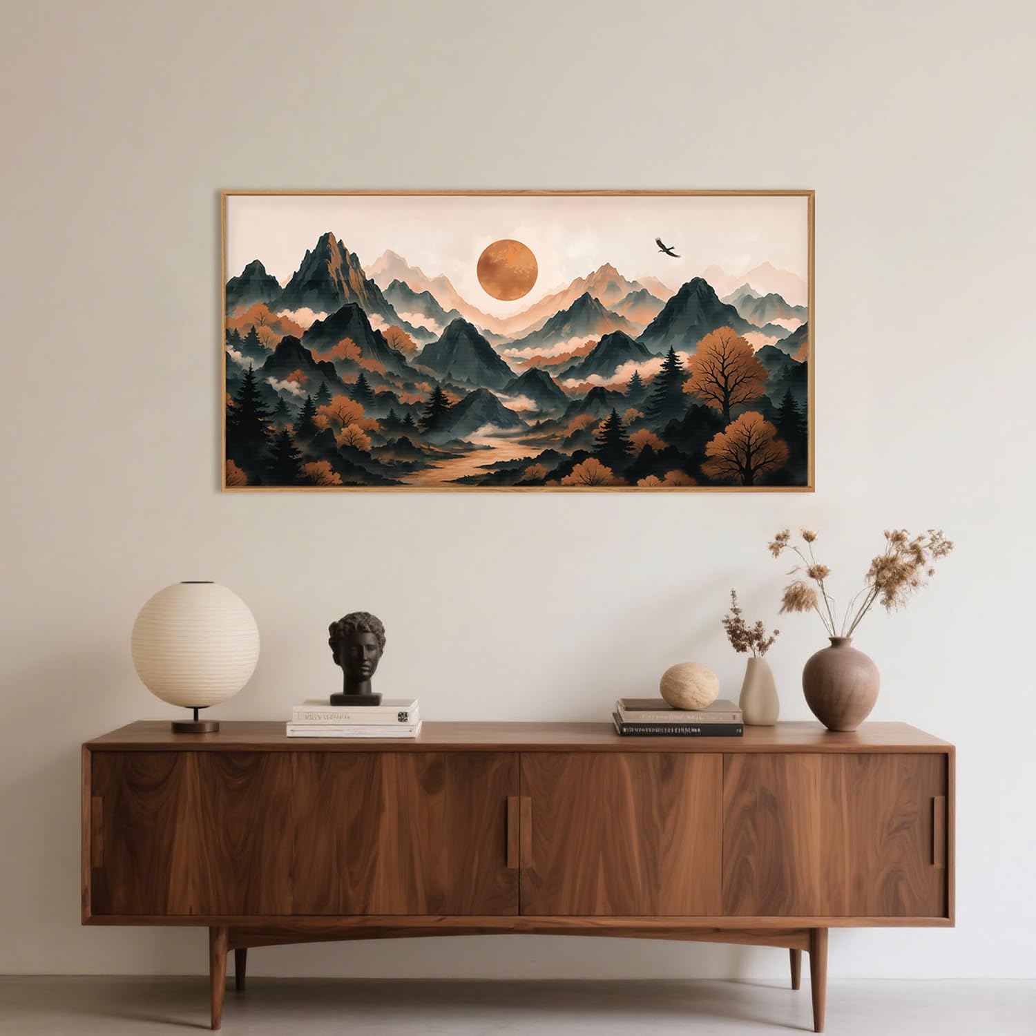 - 【Large Boho Mountain Wall Art Set】This large boho mountain framed canvas wall art set executed in a charming nature style, captures mountains and trees, evoking an poetic atmosphere. Its modern organic aesthetic is reminiscent of nature charm. Utilizing this artwork as part of your decor will make your room full of poetry.
