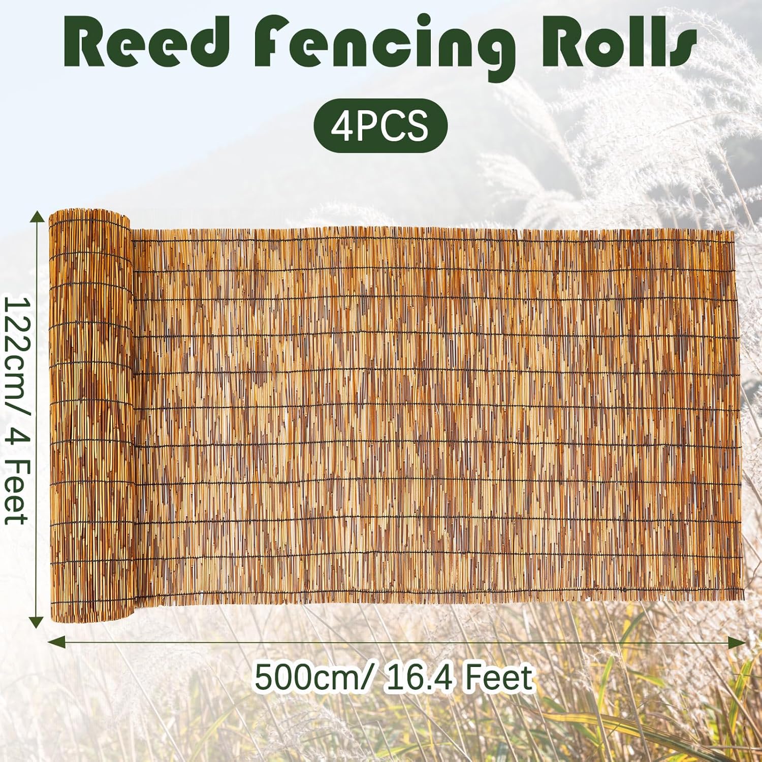 - Packing List: this package includes 4 reed fences of size about 3 x 16.4 ft/ 0.91 x 5 m; The surface of the reed fence may have slight burs, hence, it's important to wear gloves during installation; The spots on the bamboo sieve are normal and add to the authentic look; Ensure to store the natural reed fence in a dry, ventilated place when not in use, to maintain its longevity
