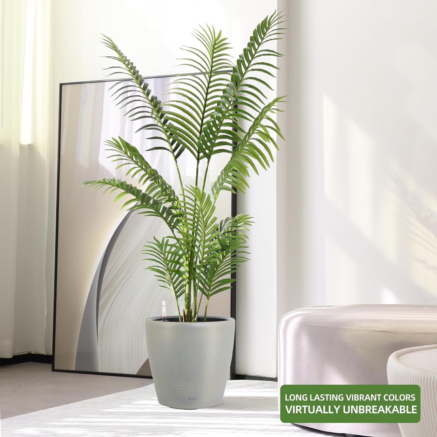 Dexceder 15x14 Self Watering Planter with Wheels Indoor Outdoor, Inner Pot Design, Thickened Large Floor Standing Flower Plant Pot with Water Level Indicator (Grey Gold Crackle)