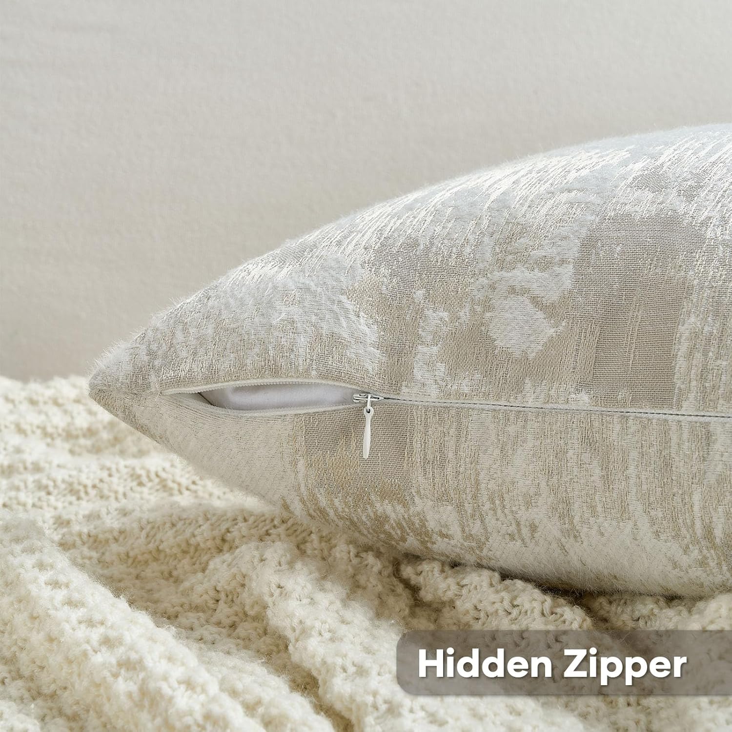 FUTEI Beige White Decorative Throw Pillow Covers 24x24 Inch Set of 2,Soft Faux Cashmere Jacquard - Textured & Cozy Euro Pillow Shams,Modern Home Decor for Couch Bed Living Room