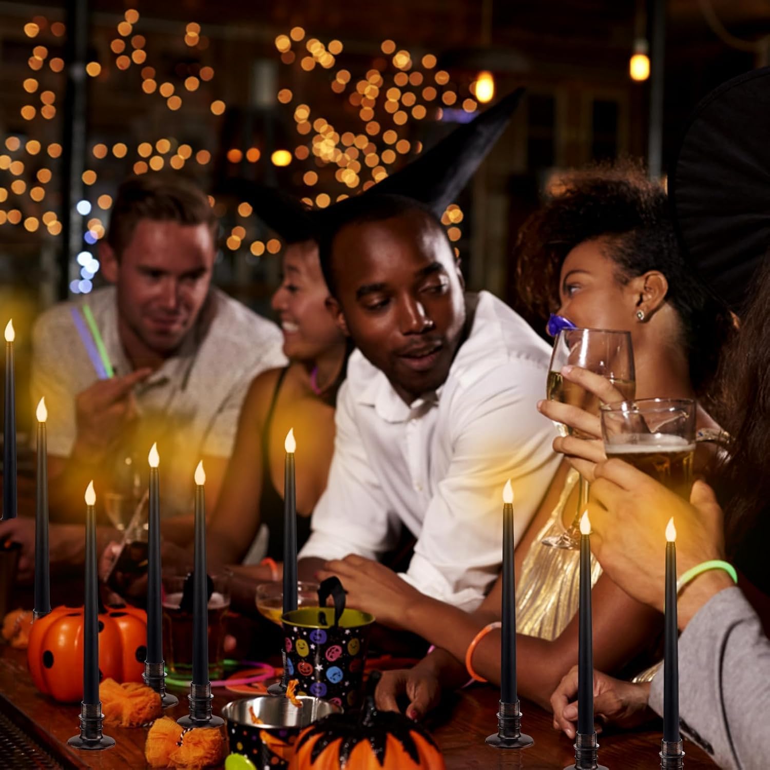 - [Realistic Flame]: The black LED Halloween candles to have orange light, just like a flame. After lighting up the LED lights, the candlelight flickers slightly in the dark. Its color and shape are similar to real candles. The simulated candle flame is not afraid of wind and rain, so you can use it outdoors with confidence.