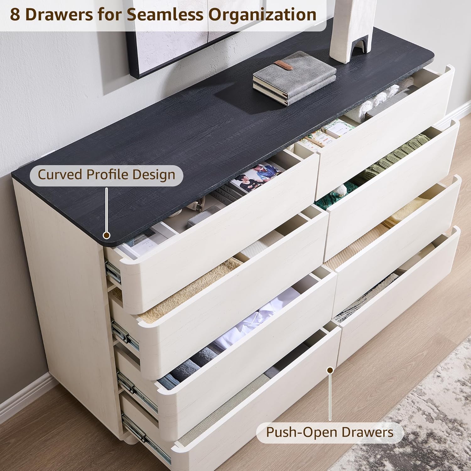 8 Drawer Dresser for Bedroom, 52 Inch Wide Modern Chest of Drawers, Push-to-Open Wood Storgae Organizer with Large Drawers for Bedroom, Living Room, Hallway, Off White