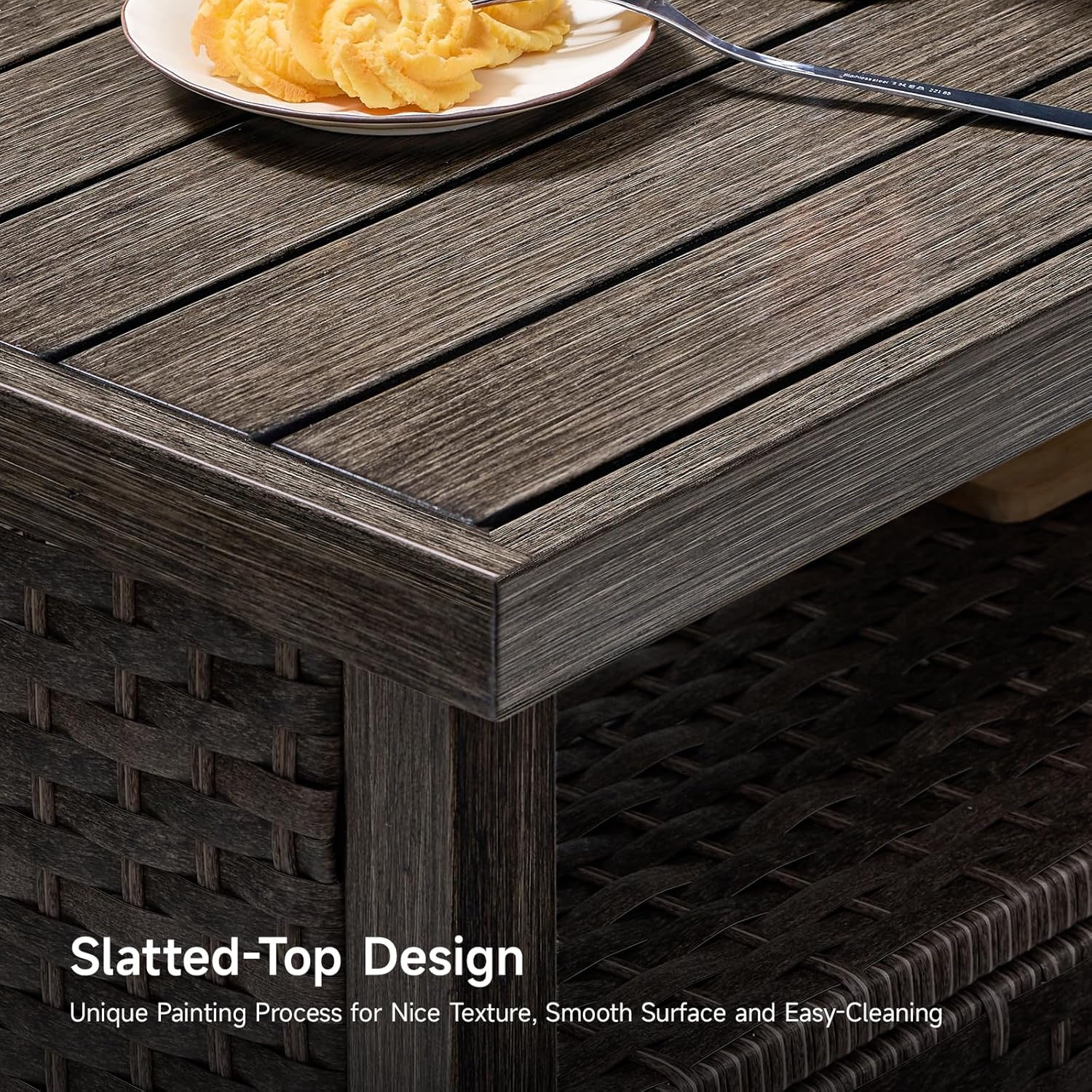 Outdoor Storage Cabinet, Woven Rattan Bar Table with 2 Doors, Slatted-Top, Wicker Console Table for Patio, Garden, Backyard, Kitchen - Brown