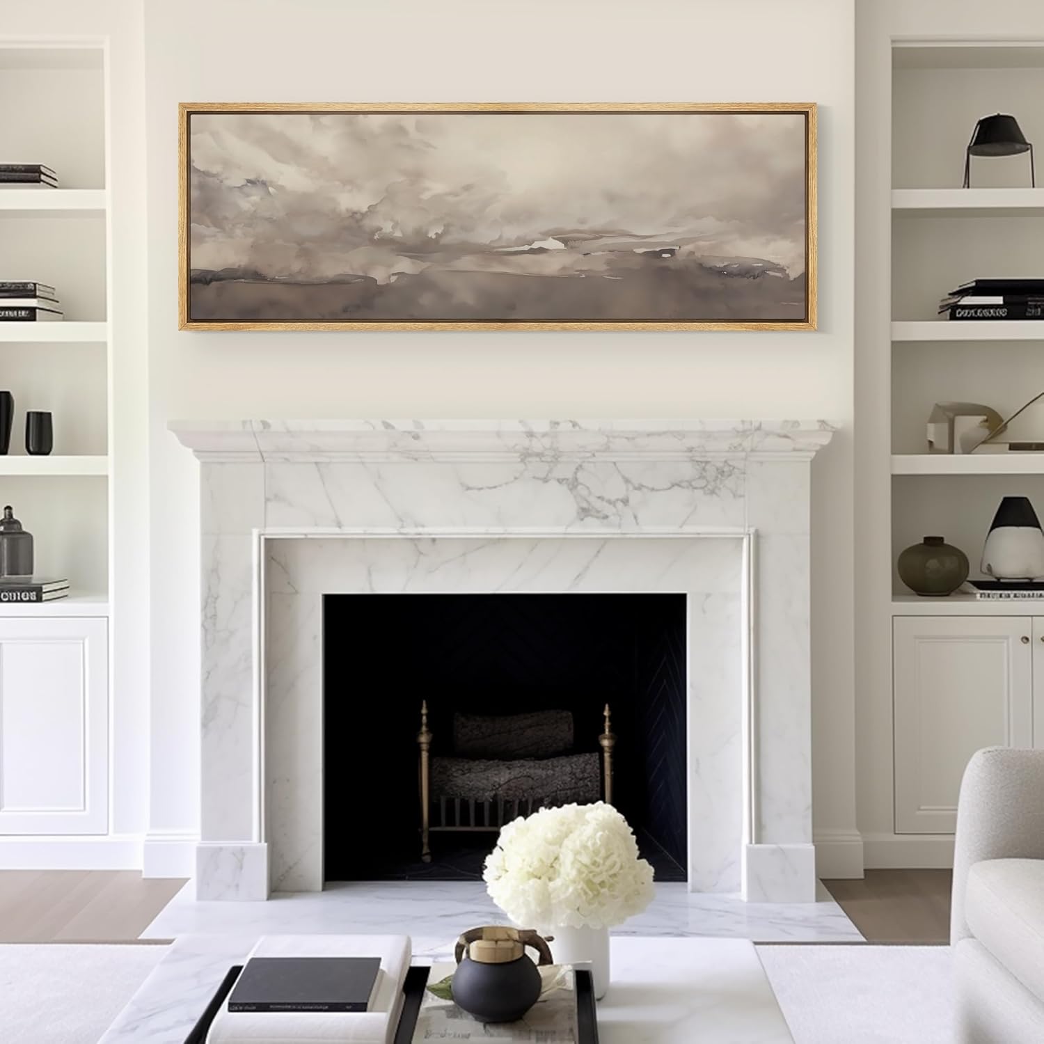MUDECOR Large Framed Canvas Print Wall Art Misty Landscape Neutral Tranquil Abstract Nature Painting in Earth Tones Illustrations Decorative Colorful Multicolor for Bedroom - 60"x20"