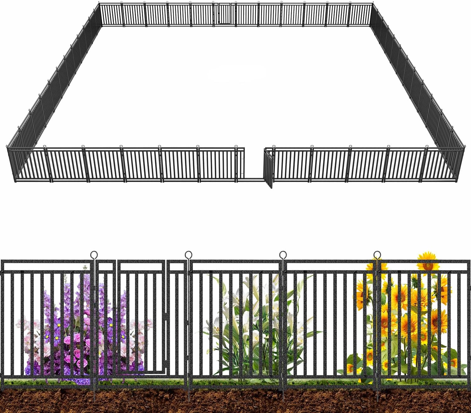 - Versatile Design: The Decorative Garden Fence measures 110ft (L) × 32in (H), including 42 panels and 6 gates, perfect for creating animal barriers and decorative boundaries in yards, patios, and flower beds.