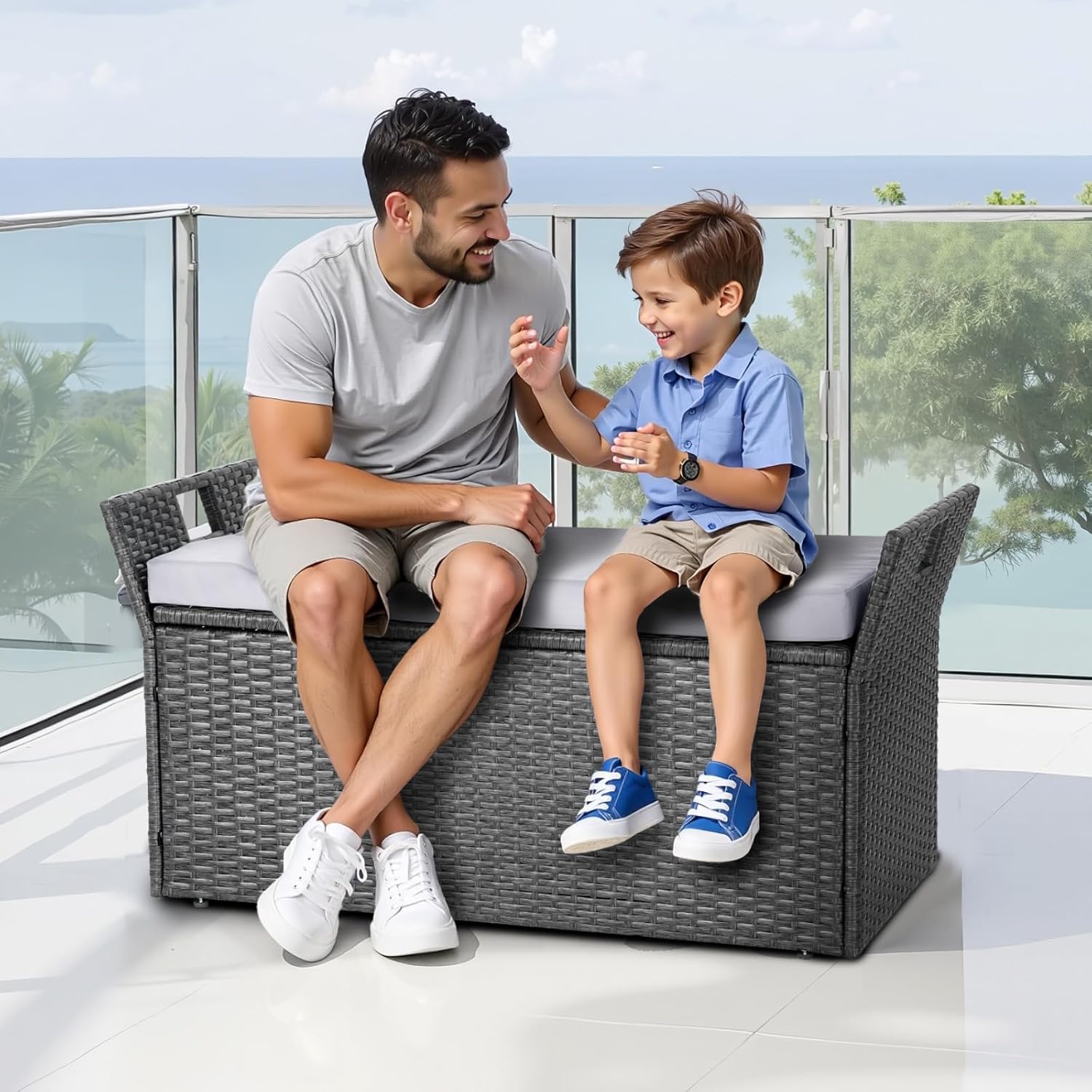- Sturdy & Durable: Made with alloy steel frame, this PE rattan storage bench supports up to 400 lbs, providing a stable structure that won't easily deform or wobble over time. The PE rattan resists cracking and fading, ideal for long-term outdoor use.