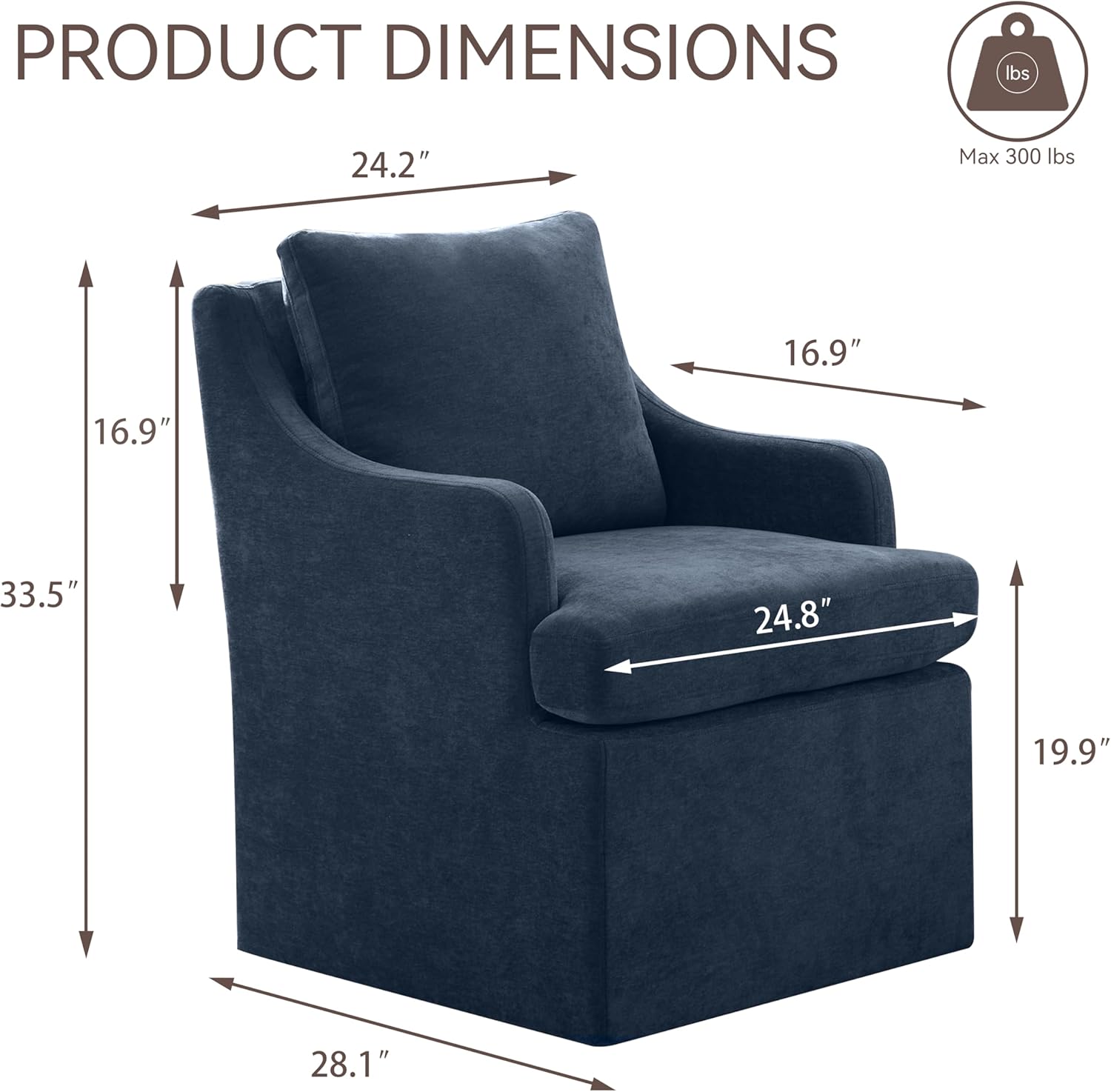 VKNOW Upholstered Dining Chairs Set of 2, Modern Kitchen Chairs Dinner Chairs with 4 Casters, Linen Armchair for Bedroom Reading Room Living Room, Navy