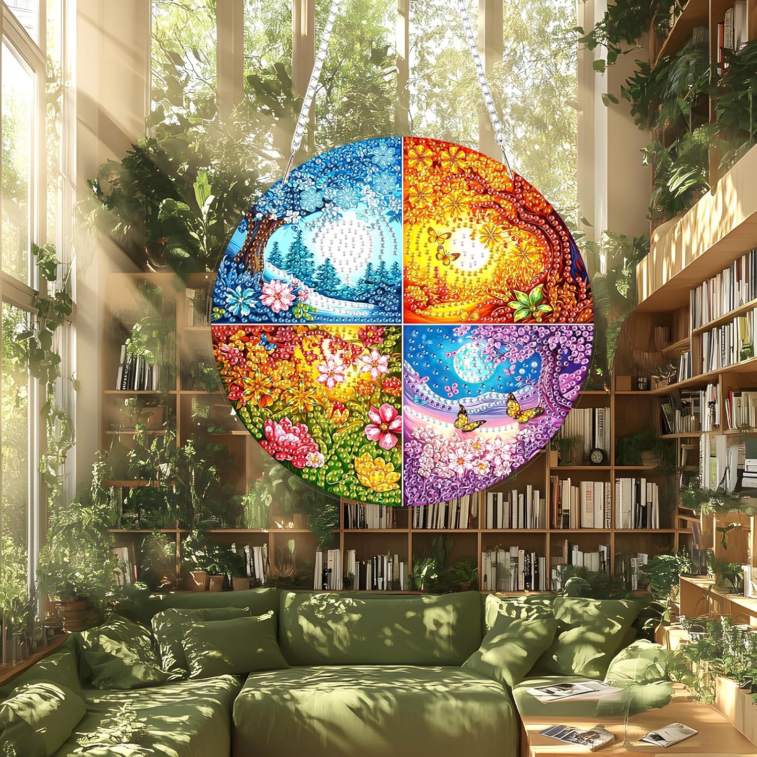 Lxmsja DIY Four Seasons Diamond Painting Hanging Ornament, Double-Sided Acrylic Landscape Diamond Art Kit, Special Shaped Drill Pendant Window Art Kit, Suncatcher Hanging Craft Decoration 8x8 inch