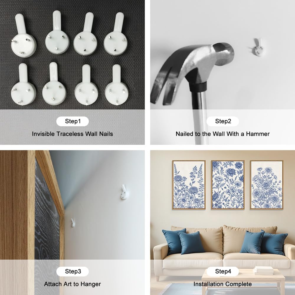 - [Easy To Hang] The size of this blue watercolor flower wall pinting is 16x24 inches (40x60cm). With the provided hanging kit, it's easy to display this artwork. Simply measure your wall space, hang it up, and enjoy the transformation of your space into a haven of beautiful art.