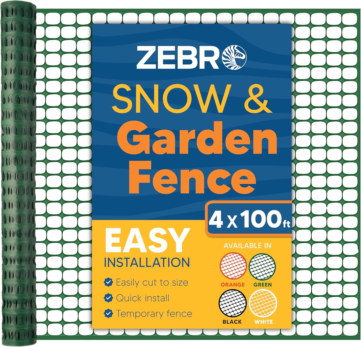 ZEBRO 4' x 100' Green Plastic Garden Fence Roll – Light Duty Mesh Fencing for Temporary Fence, Snow, Garden Netting, Animal Barrier, Agricultural Fencing & Lawn Protection