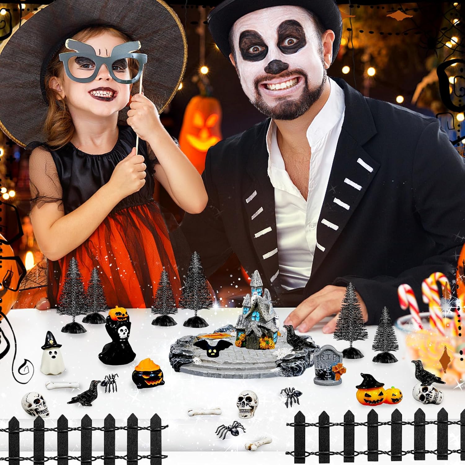 - Wide Appliactions: The halloween mini village scene set is the perfect decor for Halloween and is wonderful for people who like halloween decorations, suitable for halloween, office, bedroom, miniature gardens, fairy tale gardens and so on.