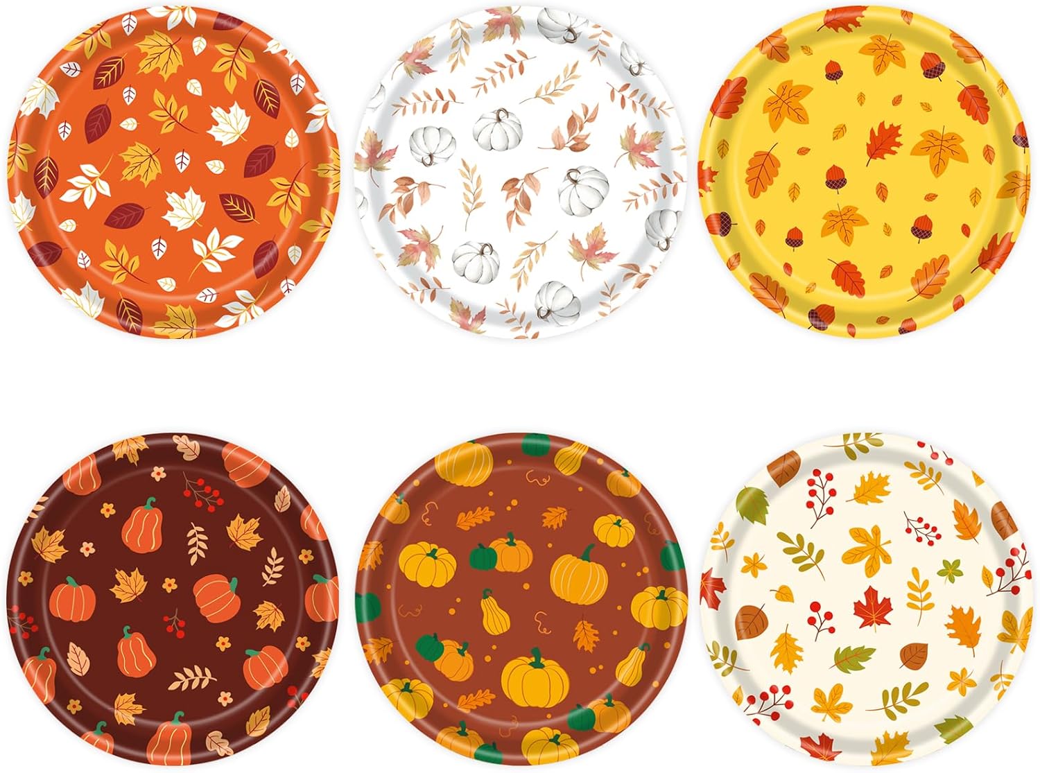 - 🍂【Package Includes】 You'll receive 48 festive fall-themed paper plates, perfect for autumn gatherings. Each set features 6 unique designs, with 8 plates per design, adding variety to your table setting.