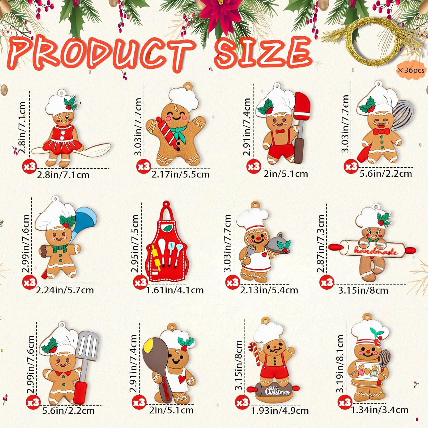- VALUABLE PACKAGE:You will get 36pcs gingerbread ornaments with ropes in 12 different cooking-themed pattern designs. They come neatly packaged in a plastic box with plenty of quantity and various styles for your Christmas party and festive decoration needs