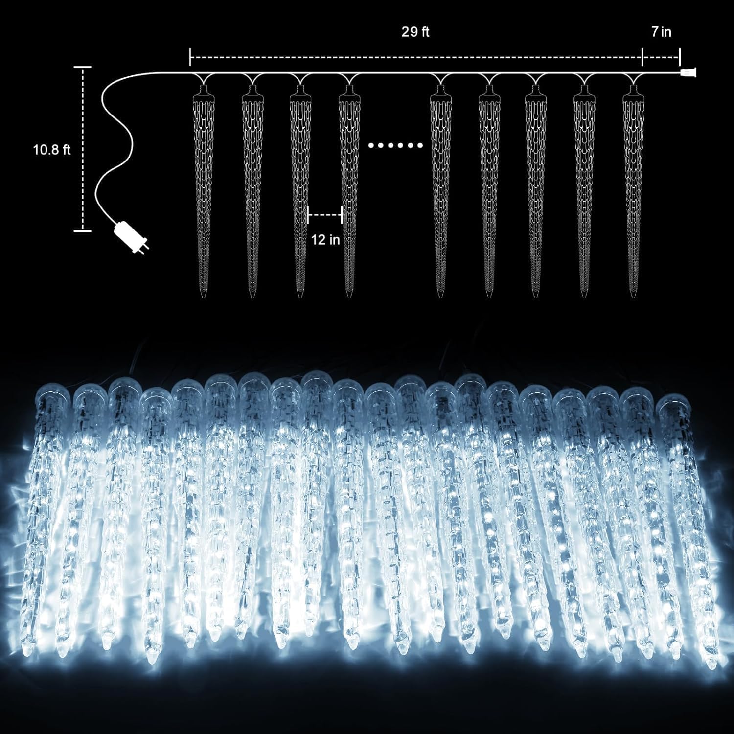 - 【Meteor Shower Icicle Lights】Experience a mesmerizing meteor shower effect with our LED lights that sequentially light up and down, creating a romantic snowfall ambiance. Perfect for wrapping trees, gardens, walls, and banisters during holidays and events;