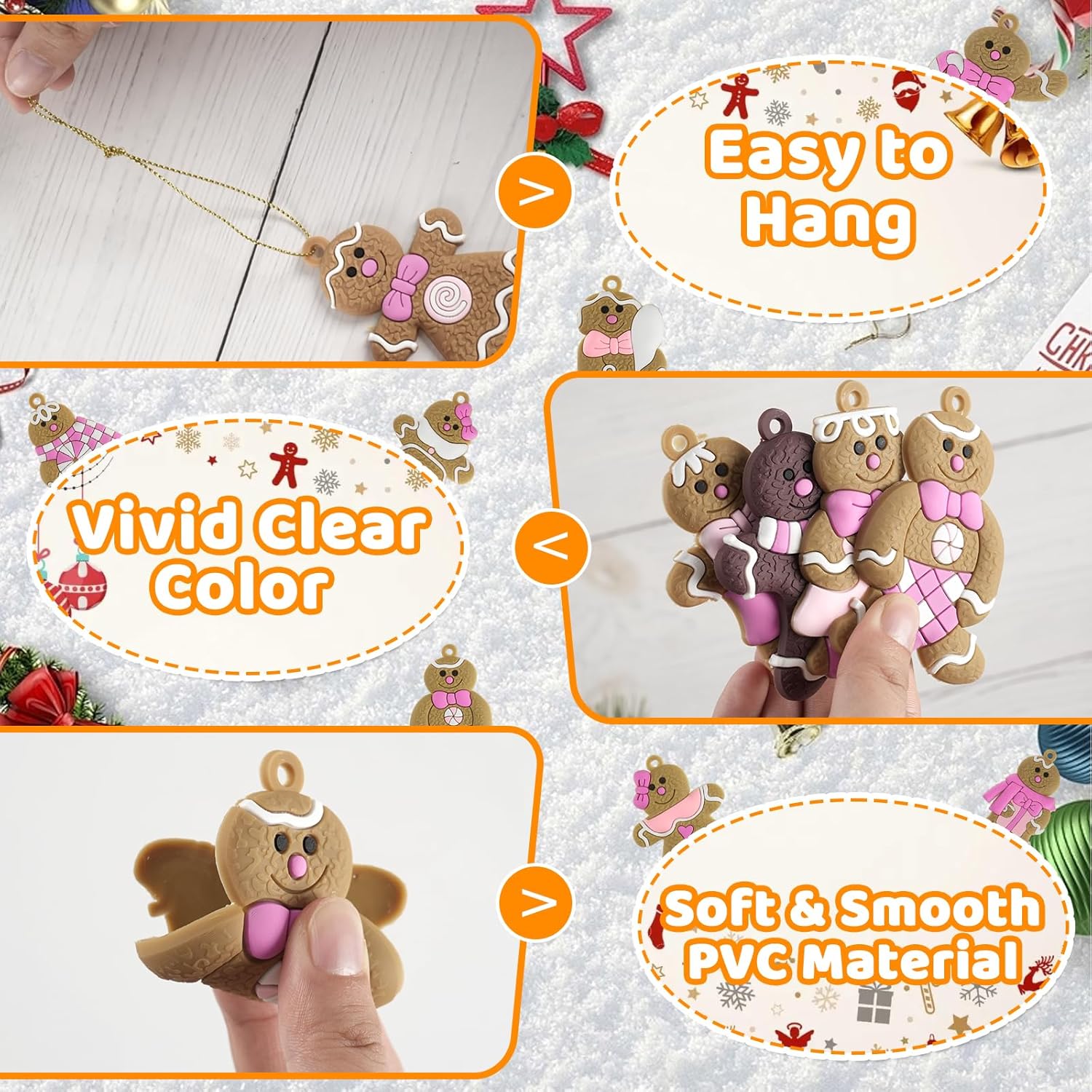 - DURABLE MATERIAL: These gingerbread ornaments are made of soft rubber material, durable and great quality, will last for yearsโ Christmas decorations