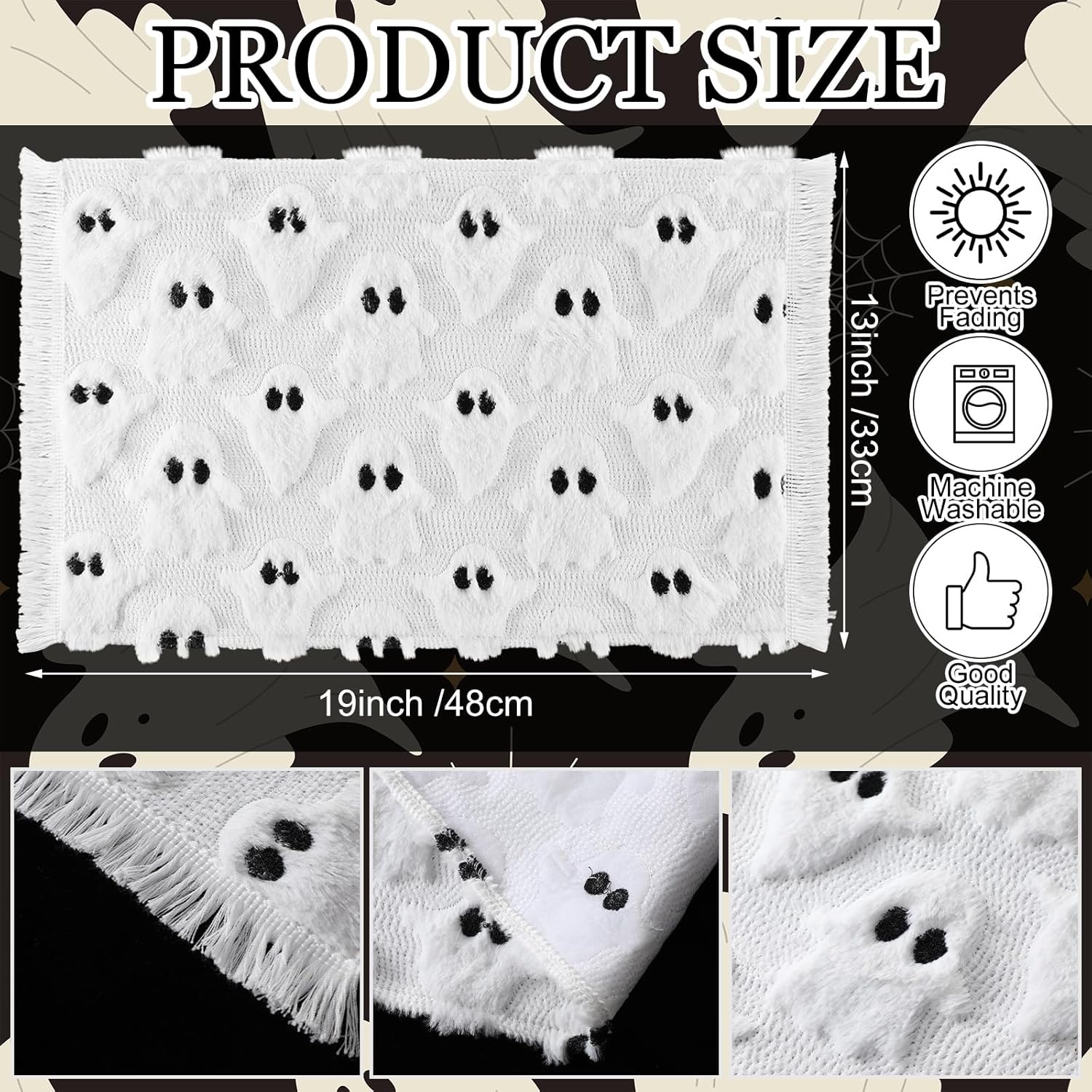 - Classic Halloween Theme Design: these ghost Halloween placemats set of 4 are white with a three-dimensional ghost shape and black big eyes, and is decorated with tassels on both sides, instantly creating a weird and cute Halloween atmosphere, nice for parties, theme dinners and other scenes