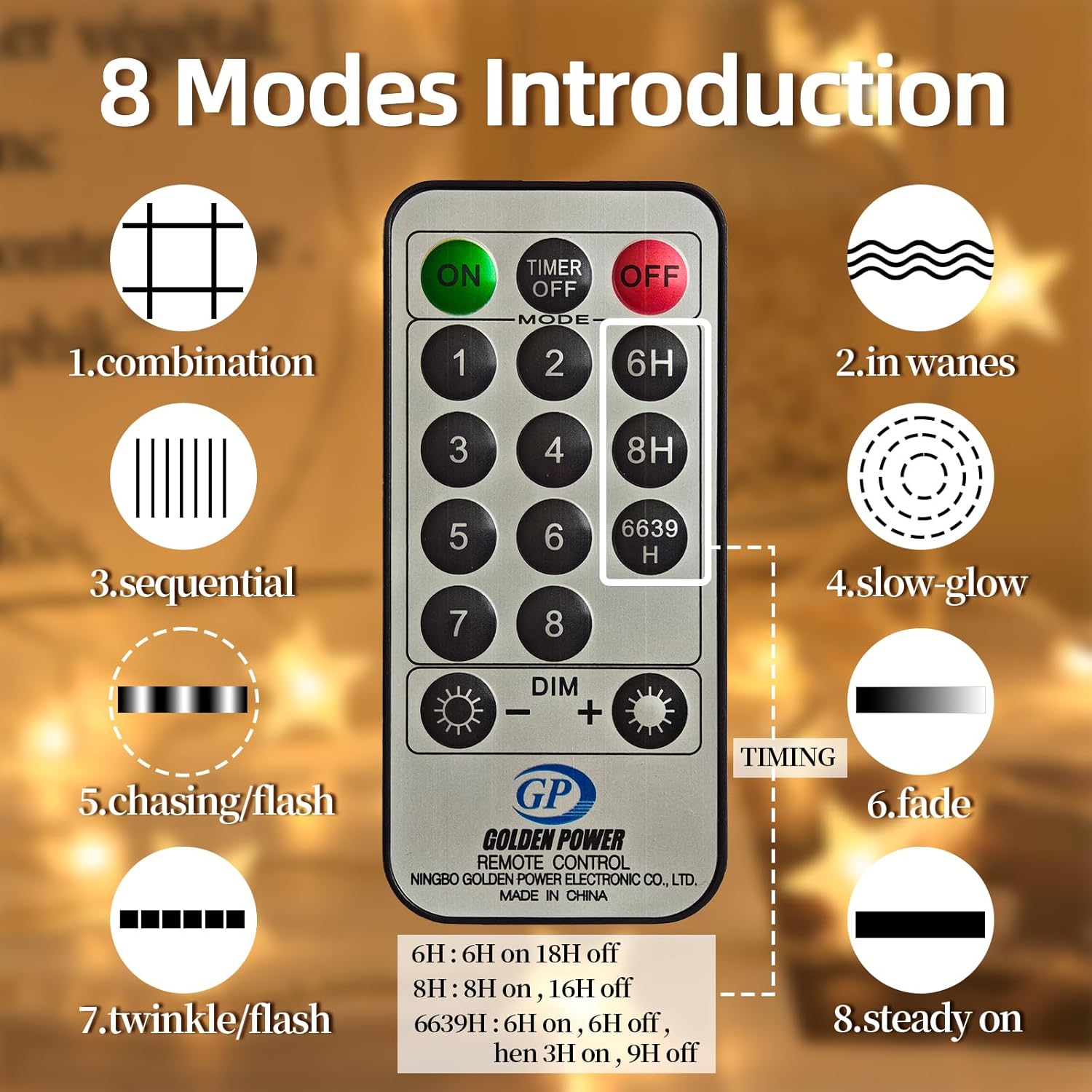 - 8-Mode Control & Smart Timer Remote: Customize the mood with 8 distinct lighting modes (memory function saves your favorite!). Set the included remote-controlled timer to turn your lights on for 6 hours and off for 18 hours daily, perfect for automation and saving energy. Control it from up to 33 FT (10 M) away, even when lights are hard to reach!