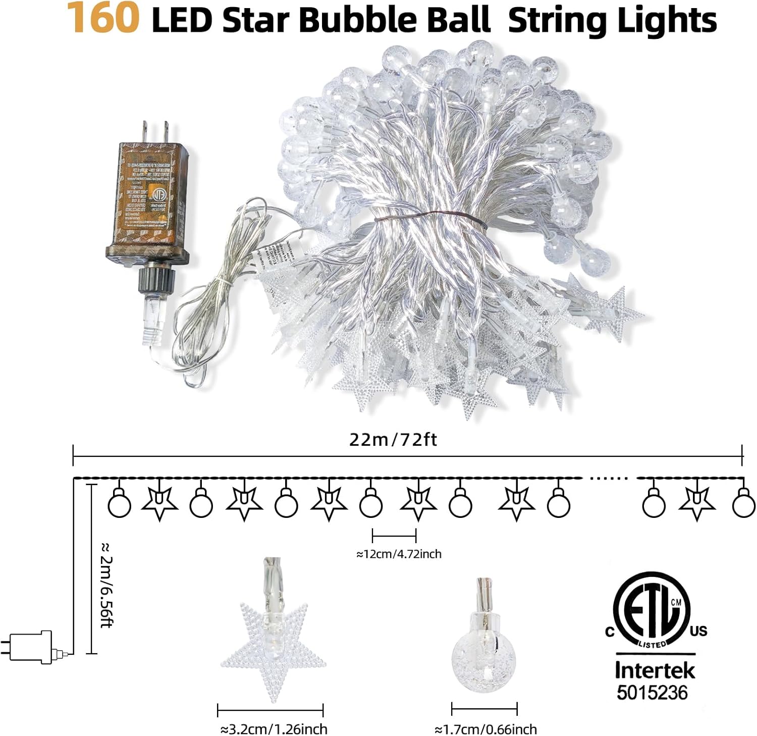 - Magical Ambiance with Spaced Crystal Globes & Stars: Discover a sparkling fairy-tale atmosphere with 160 energy-efficient LED! Beautifully spaced crystal globes and delicate stars cascade across 72 FT (22 M) of gentle, warm white light.