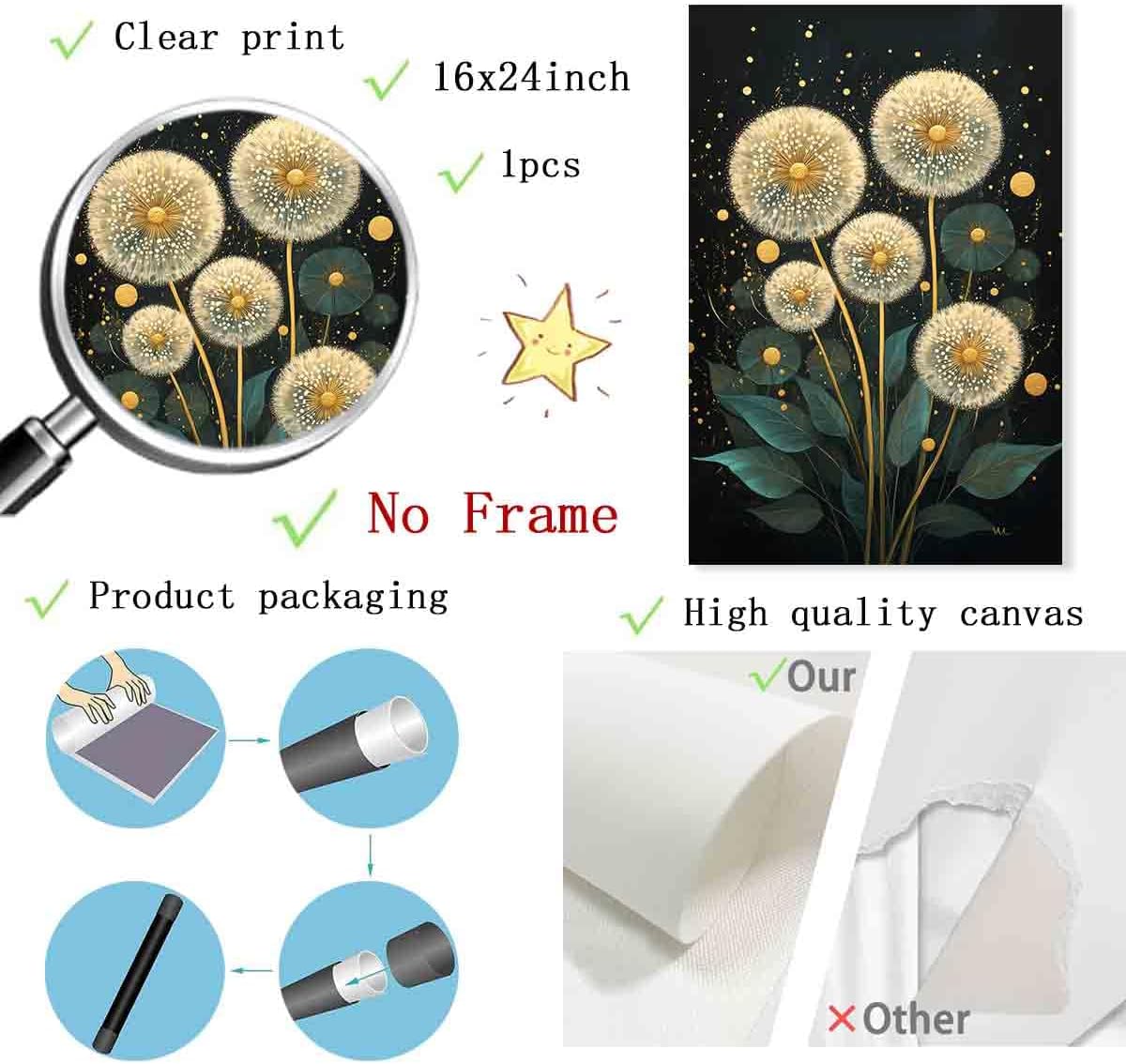 • 1.Canvas wall art specifications:Size:16X24inch,frameless,high-definition canvas wall art prints,printing pictures on canvas,using high-quality environmentally friendly ink,not easy to fade. The colors are beautiful and shiny,high-definition Giclee modern canvas print artwork.