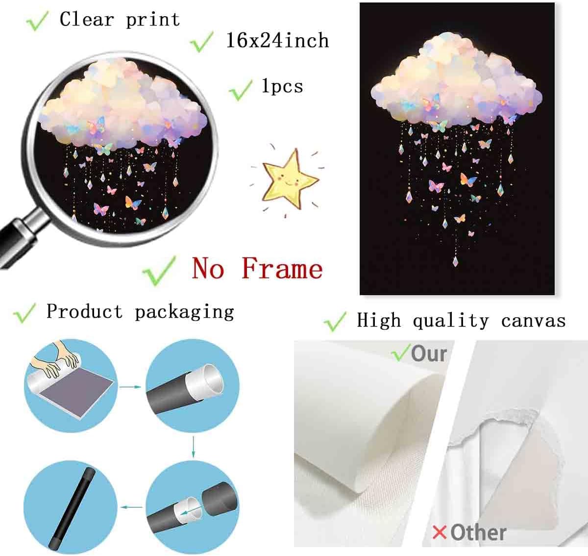 Black And White Cloud Wall Art Abstract Clouds Wall Art Rain Cloud Pictures Colorful Butterfly Picture Abstract Sky Painting Modern Abstract Prints Aesthetics Living Room Decor 16x24inch No Frame